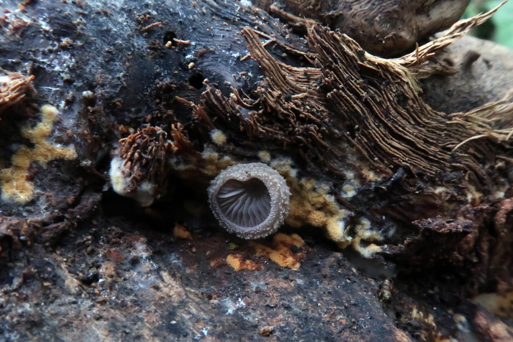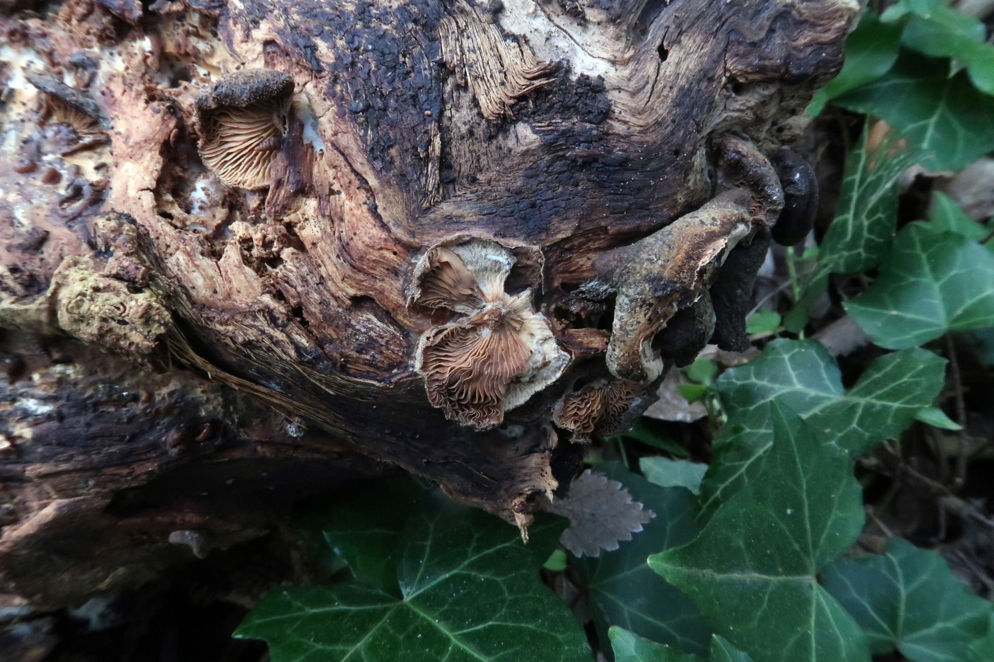 Un hongo Coprinoide que encuentro muchas veces asociado s troncos degradados de chopos, el Coprinellus radians