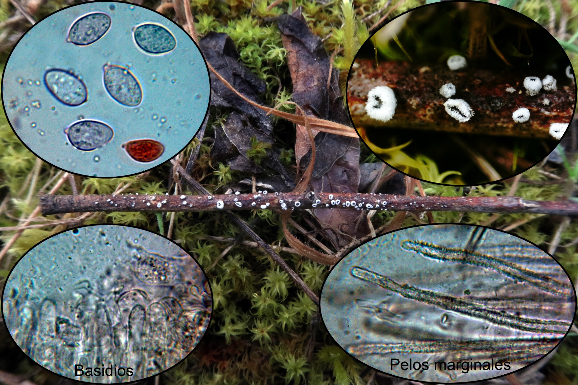 Sobre un muy diminuto tronco leñoso, una a la que le cuesta mucho soltar esporas, sus pelos externos con finas cristalizaciones la separan de su hermana la Lachnella villosa (con incrustaciones gruesas), la Lachnella alboviolascens