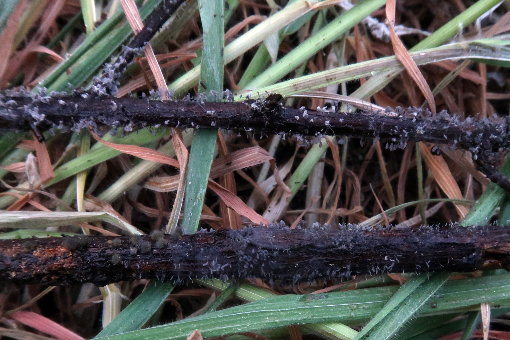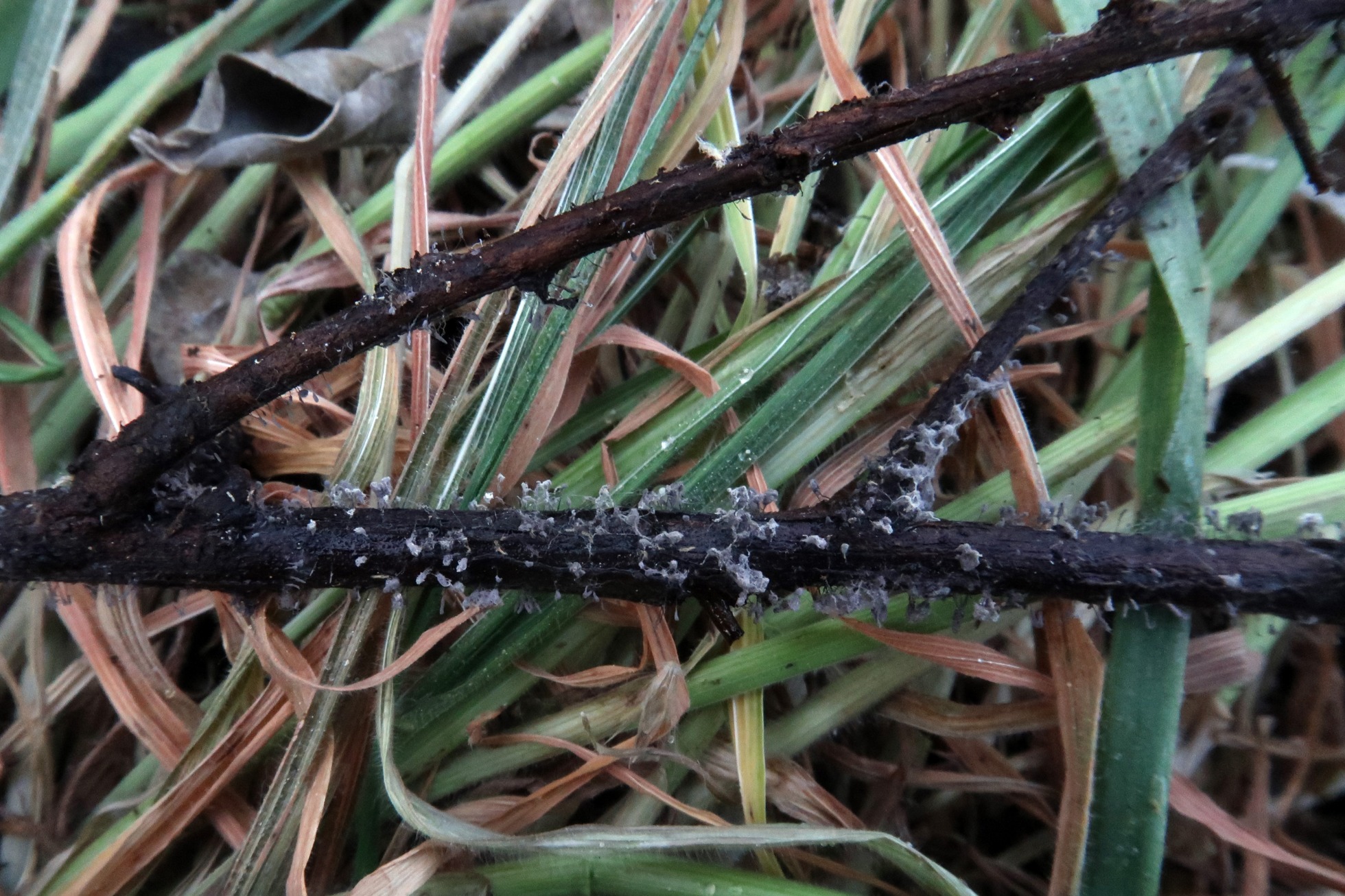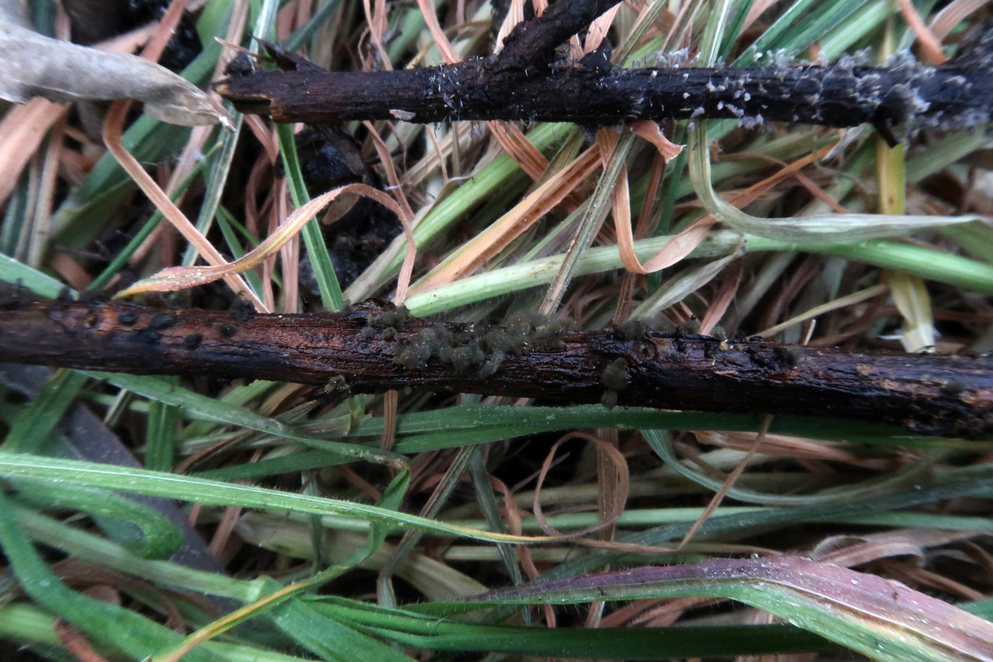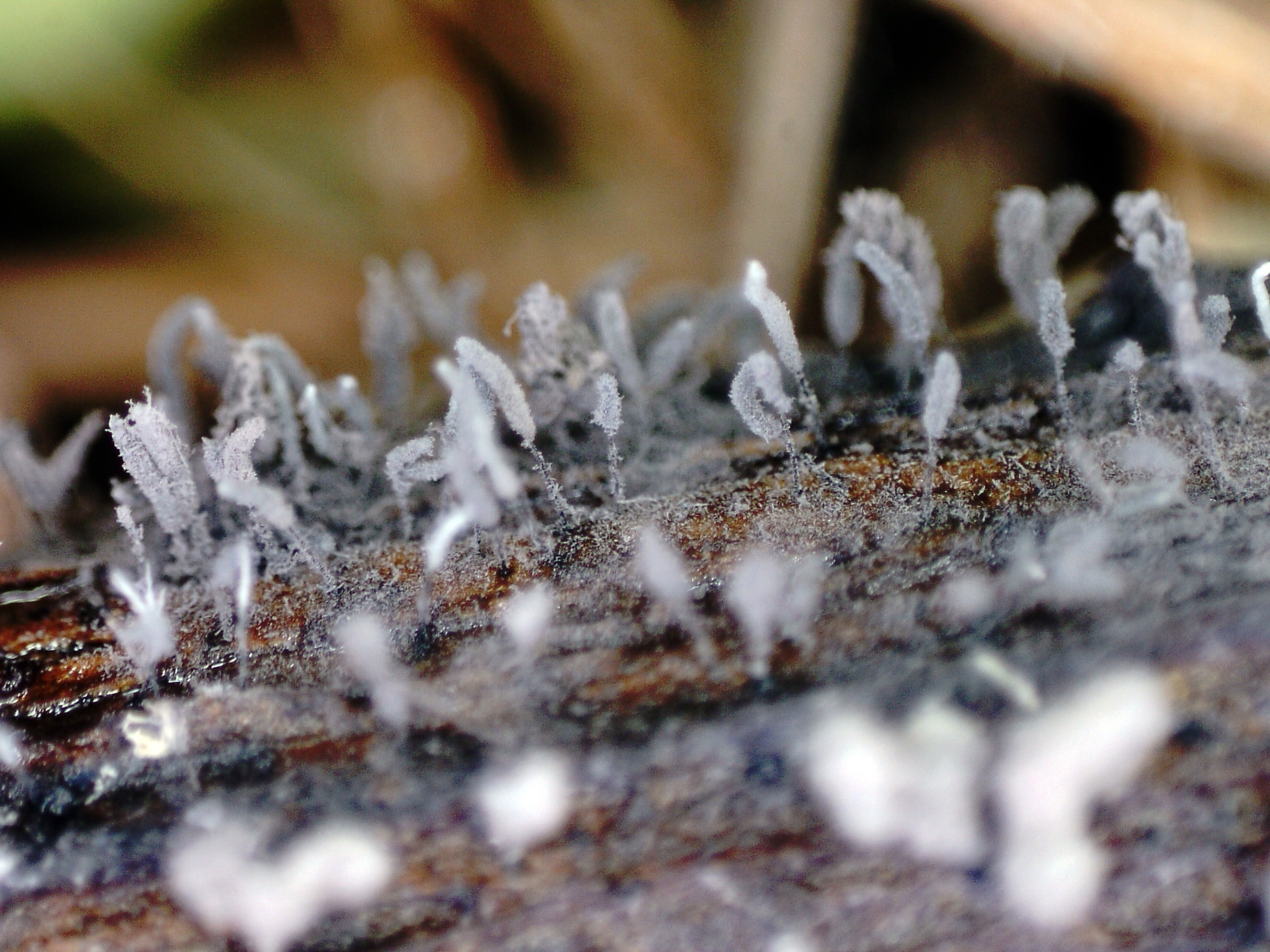 Unos diminutos ascomicetos peludos, con forma esférica y color marrón verdoso, con unas medidas de entre 0,9 a 1,7 mm. de diámetro total, brotando en un pequeño tronco de arbusto indeterminado procedente de las labores de limpeza en un campo de cultivo, cerca de un cauce contínuo de agua destinado al regadío.