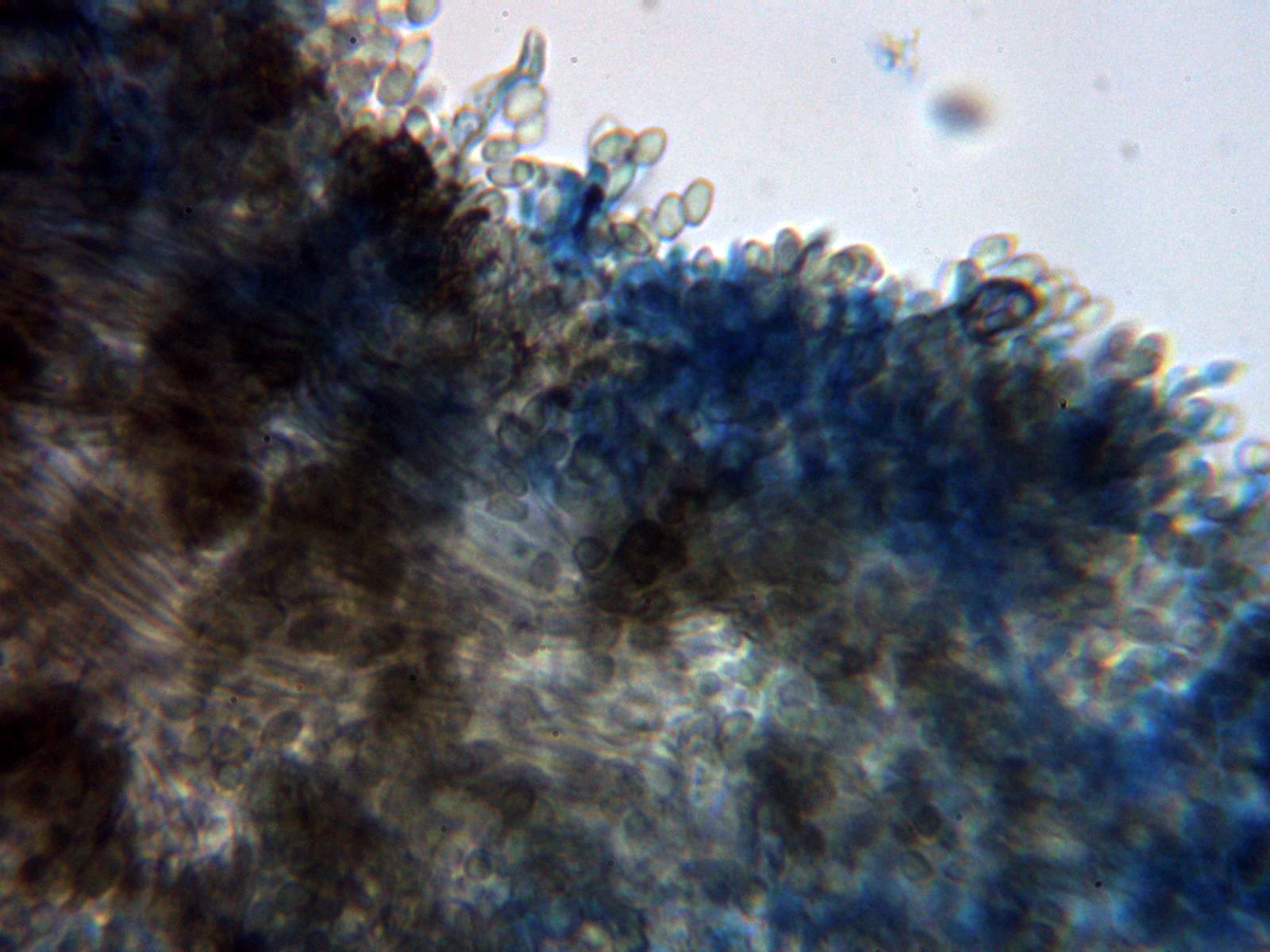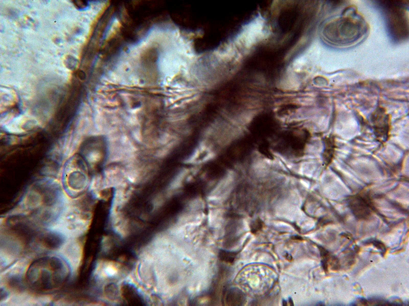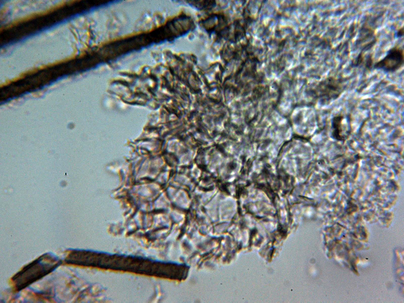 Hifas del excípulo de textura angular, con unas medidas de 8.1 - 19.8 × 6 -14.6 µm.