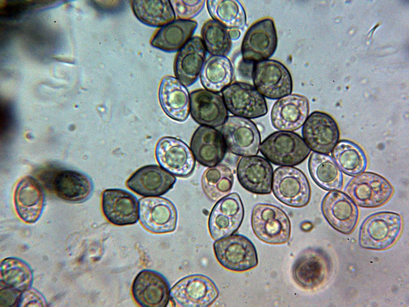 Un par de imágenes de las ascosporas a 1000 aumentos: