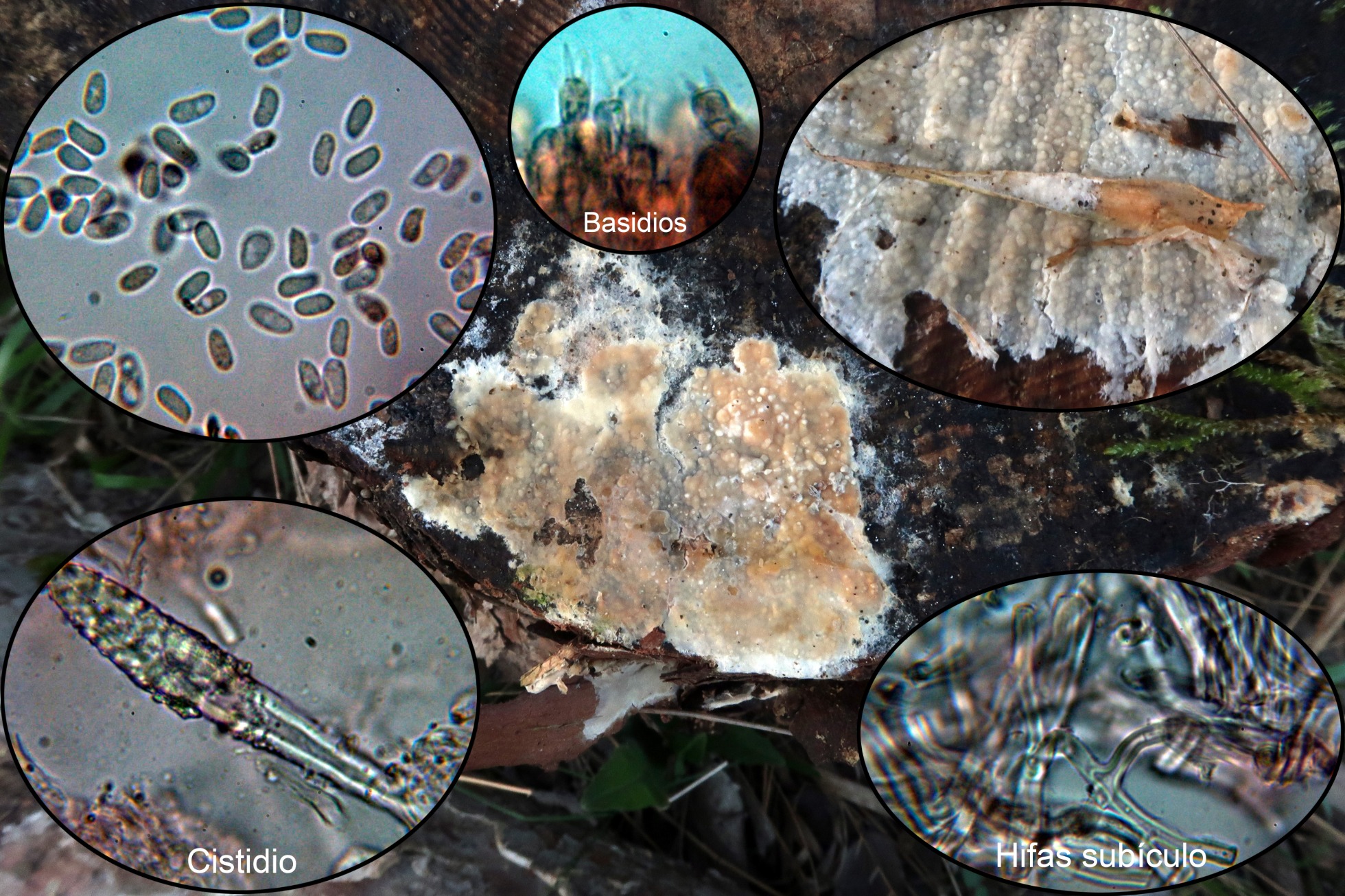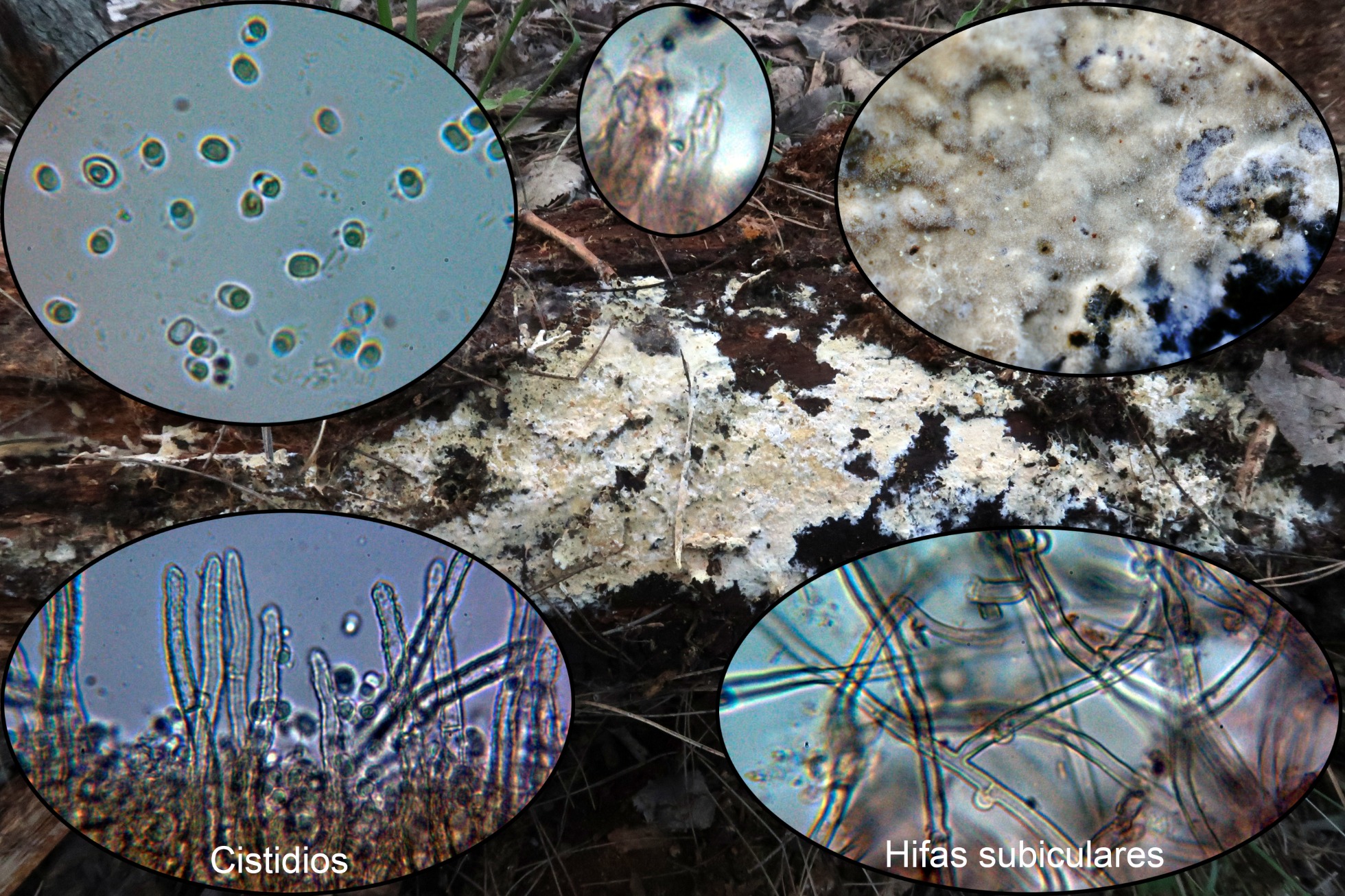 Un Corticial que ya es la cuarta vez que lo paso por el micro, la Hyphodontia pallidula