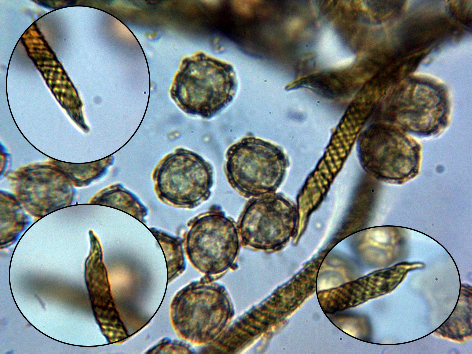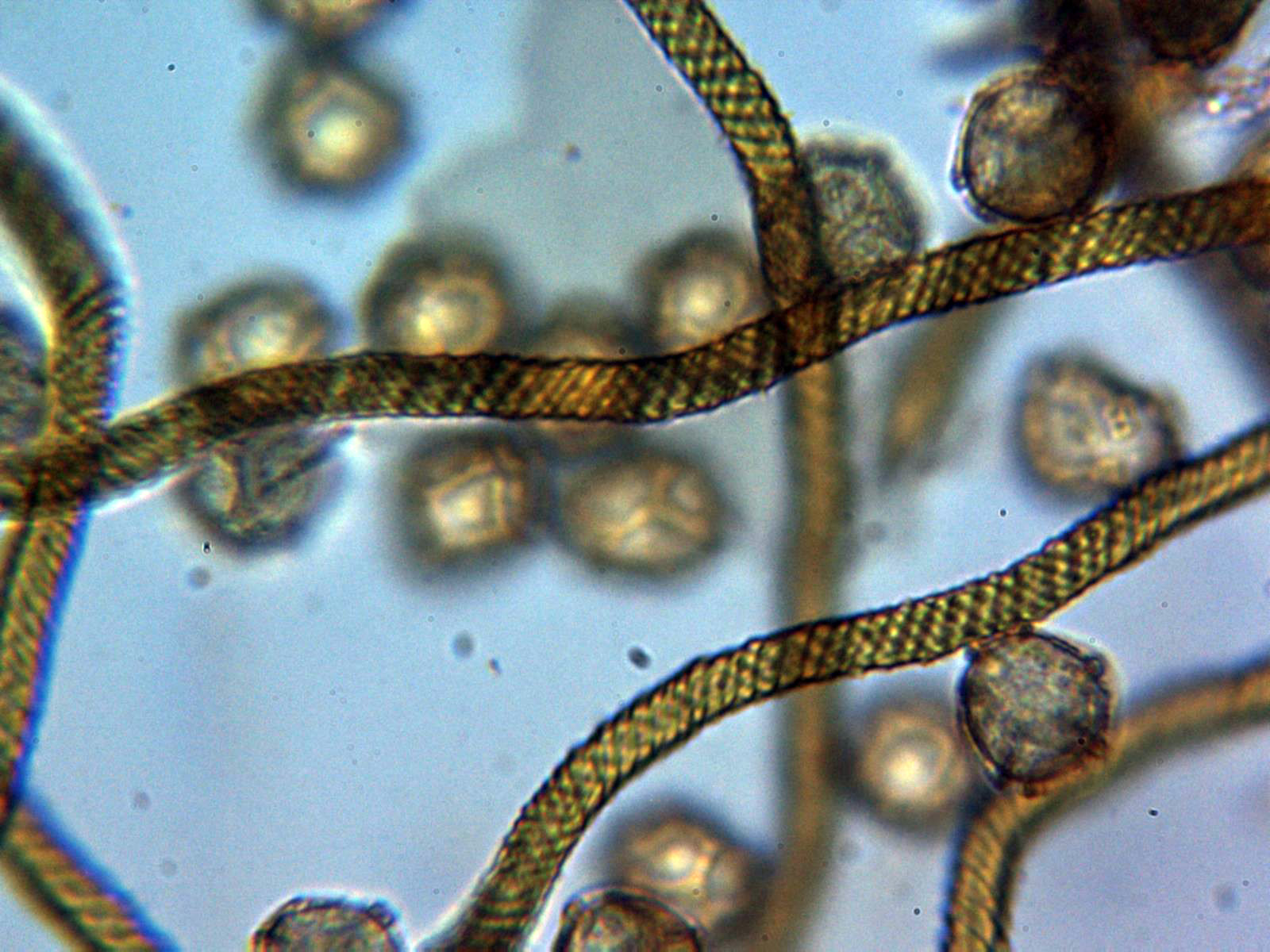 Capilicio con una anchura de de 5-6 μm., ornamentado con 4 o 5 bandas en espiral muy apretadas: