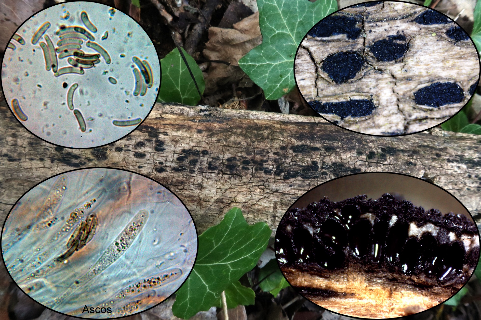 Una Diatrypaceae, con superficie irregular y como de carbón, con fructificaciones que hasta sugieren una disposición lineal, las Claves del género de Carmarán (2014), con esporas de mayoritariamente 7 a 15 µm., llevan al complejo de la Eutypella leprosa. La del presente estudio parece encajar perfectamente con la especie tipo.