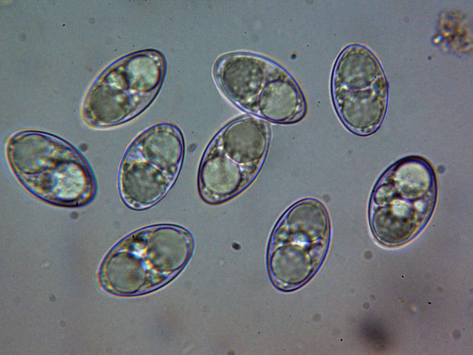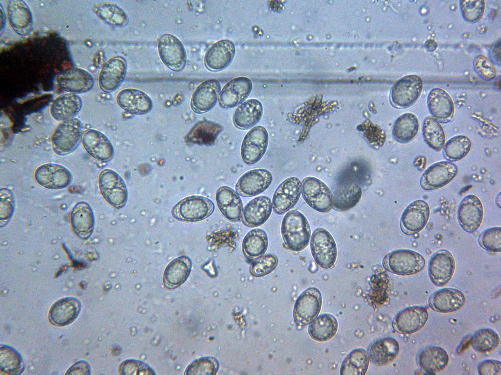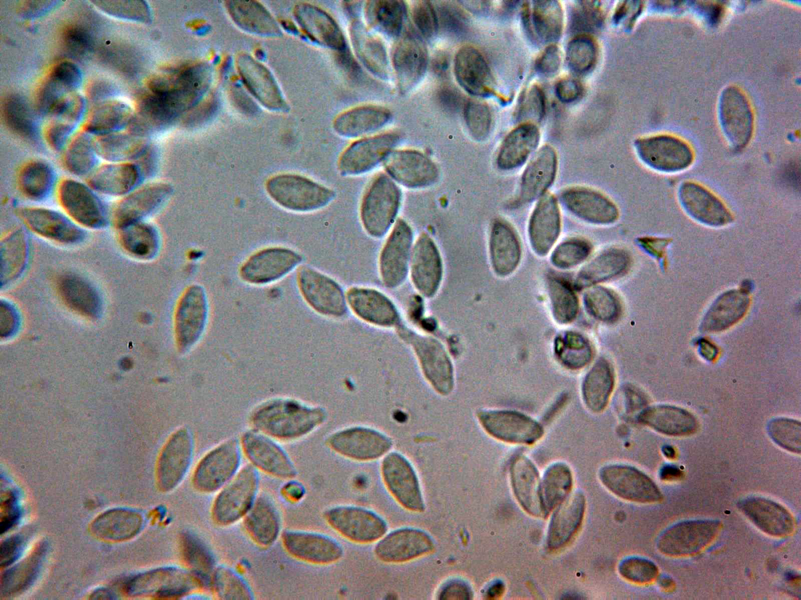 El detalle de las esporas gigutuladas no tendría un claro valor taxonómico ya que en las esporas obtenidas por esporulación natural se puden observar muchas de ellas con una sola gota en su interior. Una imágen de estas esporas a 400 aumentos: