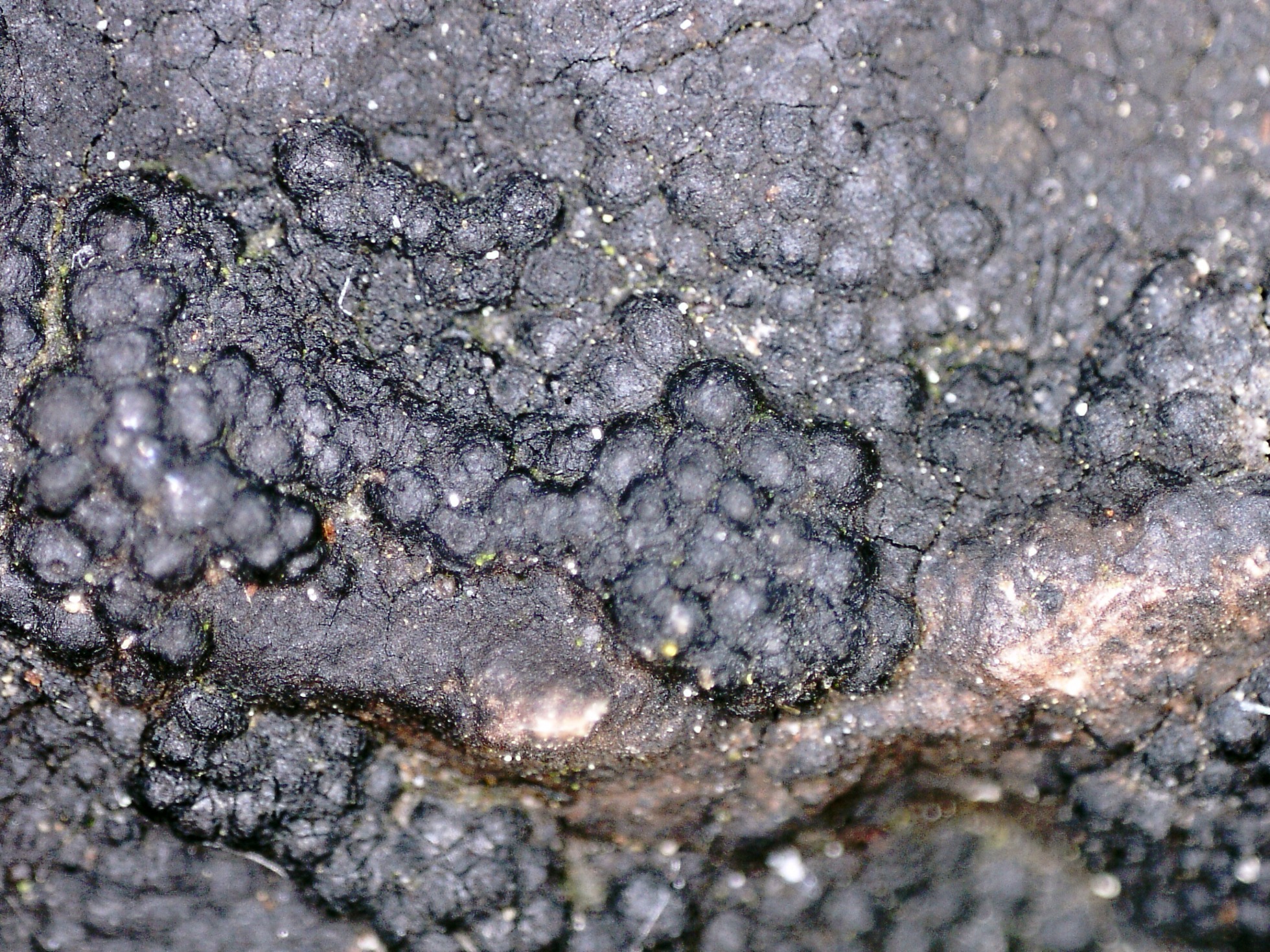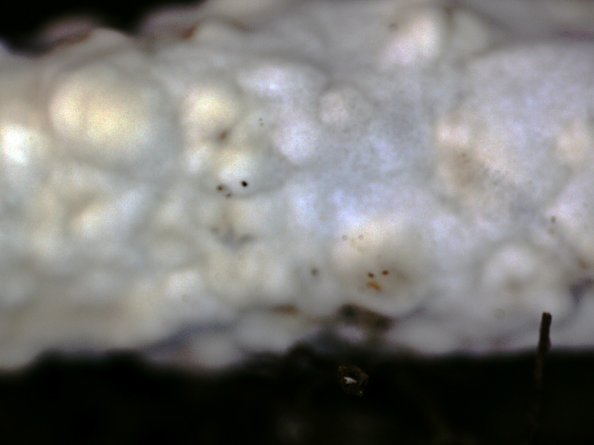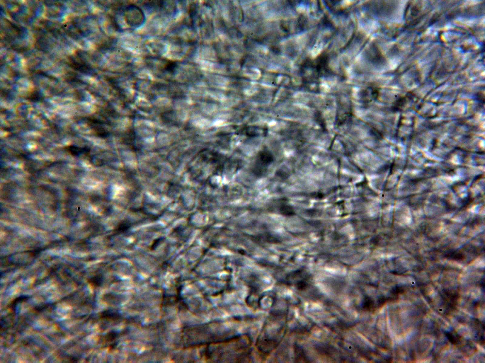 Seguimos con un Hypoxylon, este ya no pasaba por sus mejores momentos, y solo pude observar en su microscopía un gran colapso de esporas, aunque la reacción al KOH soltando pigmentos gris sepia y principalmente las medidas de los peritecios, llegando incluso a sobrepasar el mm. según las Claves de 250-550 μm diam x 600-1000 μm, solo me llevan al Hypoxylon macrocarpum