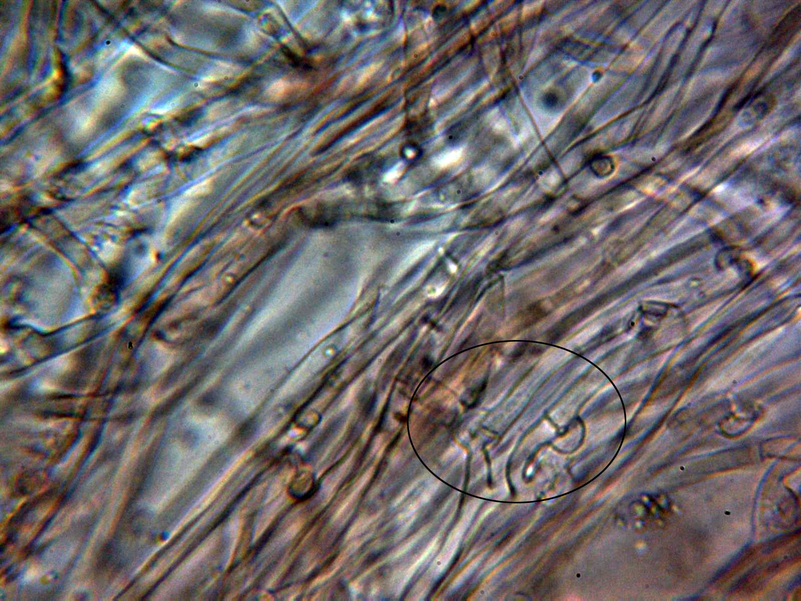 La ausencia de cistidios en el himenio, junto con las marcadas fíbulas en las hifas subiculares, sus esporas entre elipsoides y fusiformes y sus medidas, me conducen a la Athelia fibulata