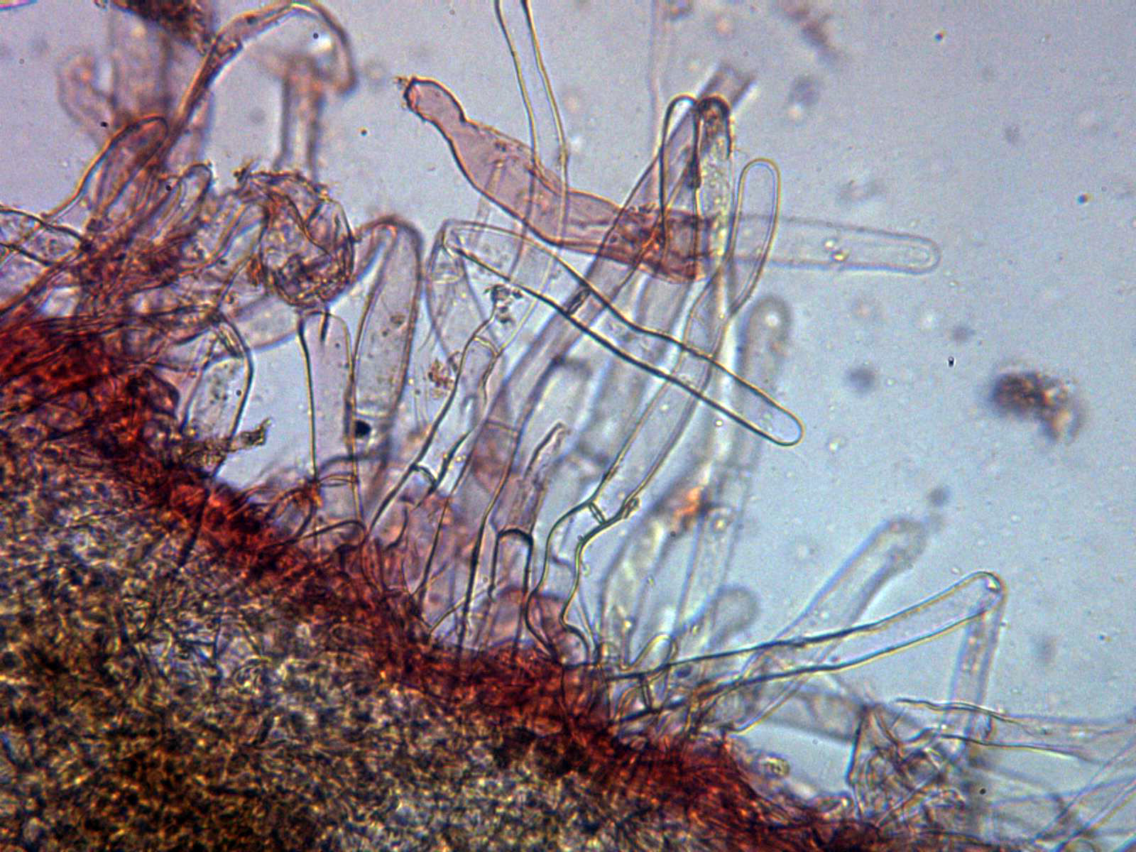 Pelos marginales a 400 aumentos, unidos en grupos, estos son los responsables del aspecto del excípulo externo.