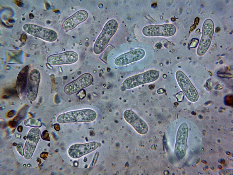 Ascos octospóricos, con esporas cilíndricas con un extemo mas ensanchado y mayoritariamente con un consteñimiento en el centro, sin septos y con unas medidas de las esporas libres de (12.9) 14.1 - 17.1 (18.1) × (4.5) 4.6 - 5.9 (6.5) µm y las obtenidas por esporulación narural de (12.6) 14.1 - 16.3 (17.2) × (4.5) 5.1 - 6.5 (6.6) µm.