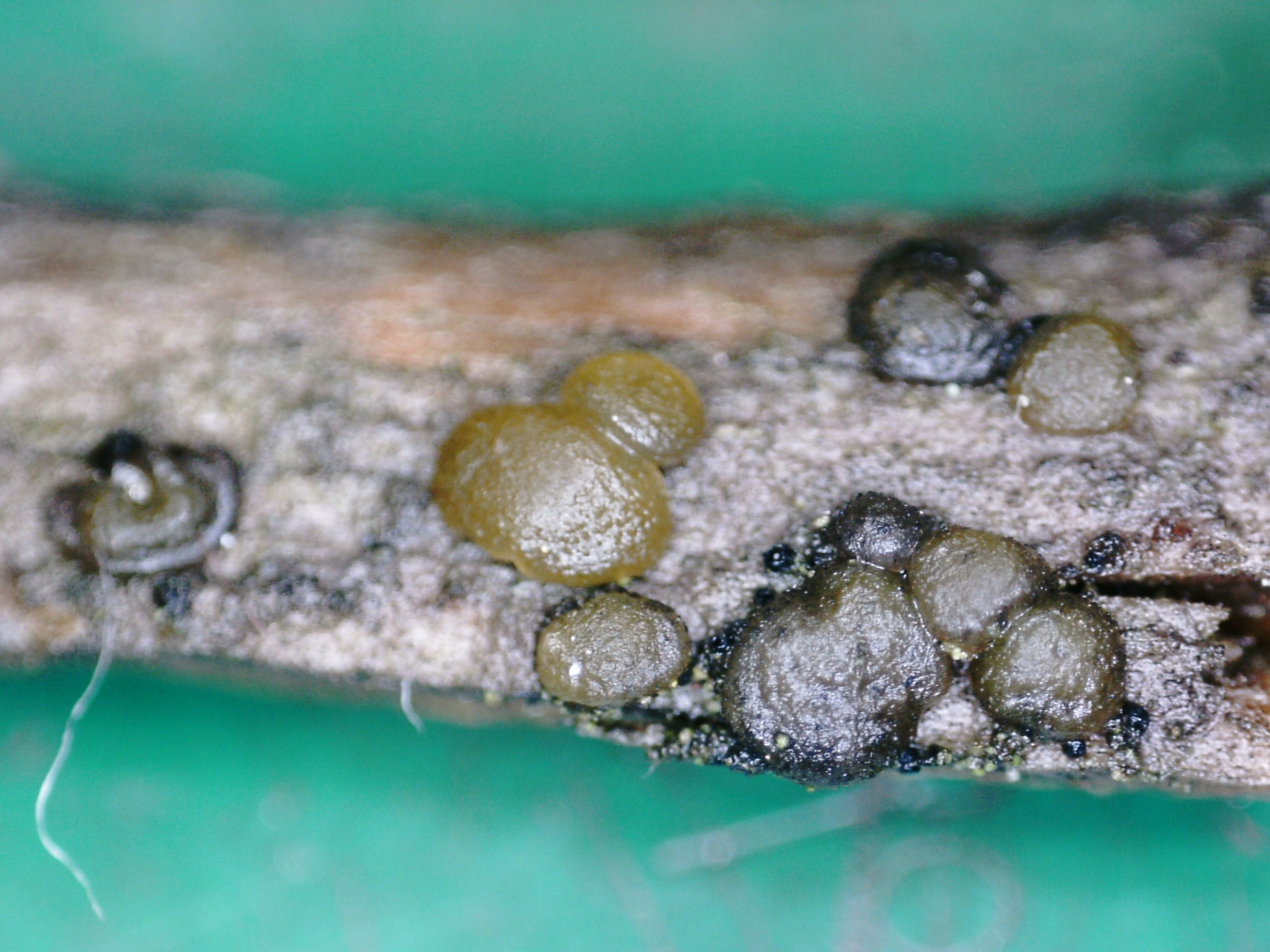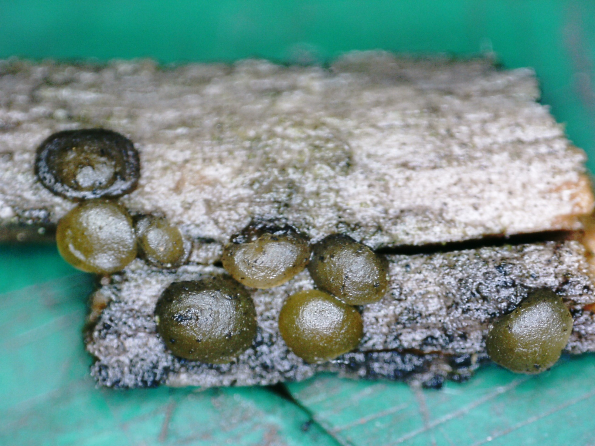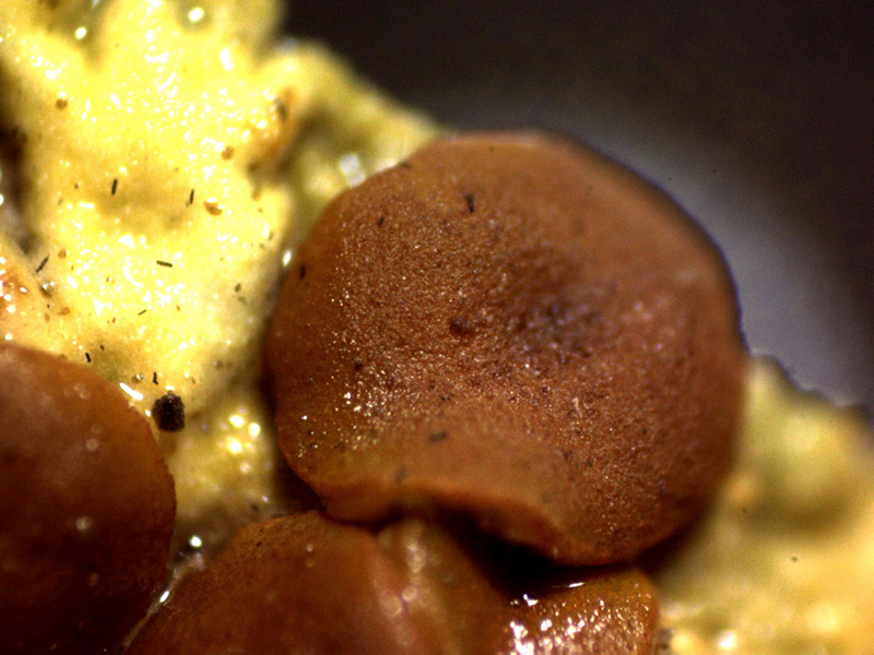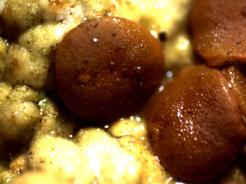 Y otro par de imágenes ya a 40 aumentos, unos pequeños apotecios de tan solo entre 0,8 a 1,5 mm. de diámetro: