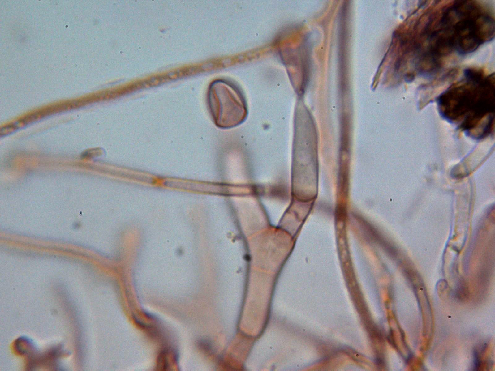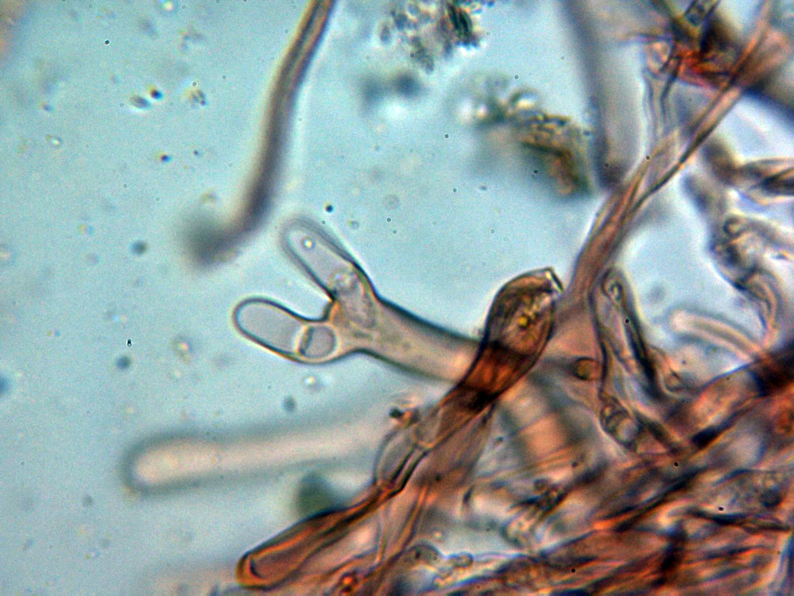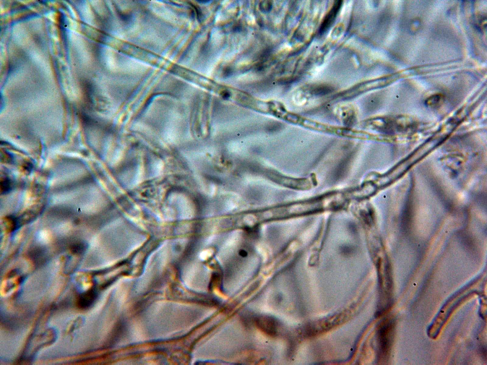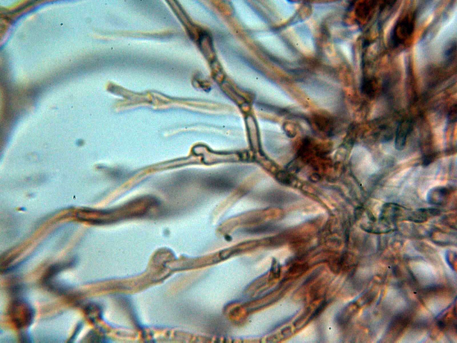 Hifas del contexto con fíbulas e inmersas dentro de una matriz gelatinizada:
