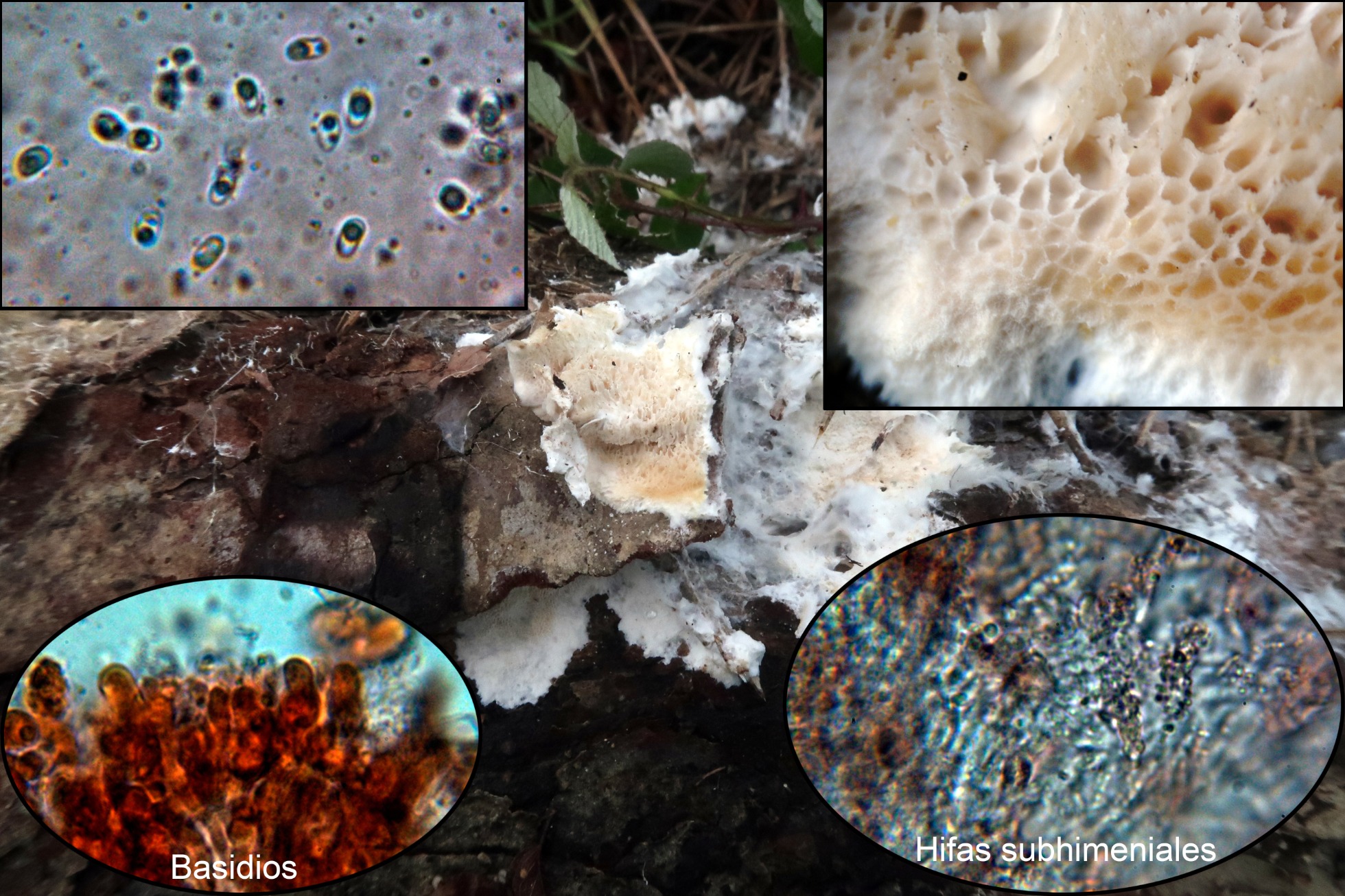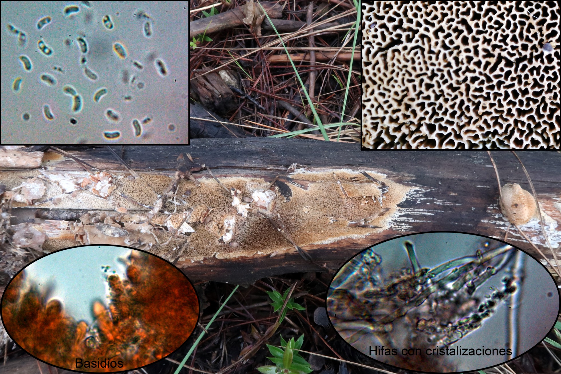 Por las hifas con iincrustaciones una Skeletocutis, parece la Skeletocutis percandida