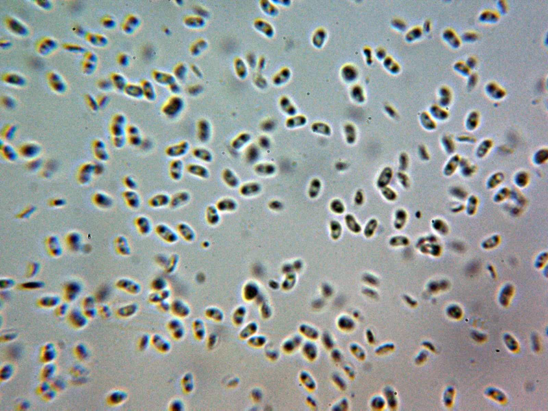 Y las mismas esporas en agua destilada: