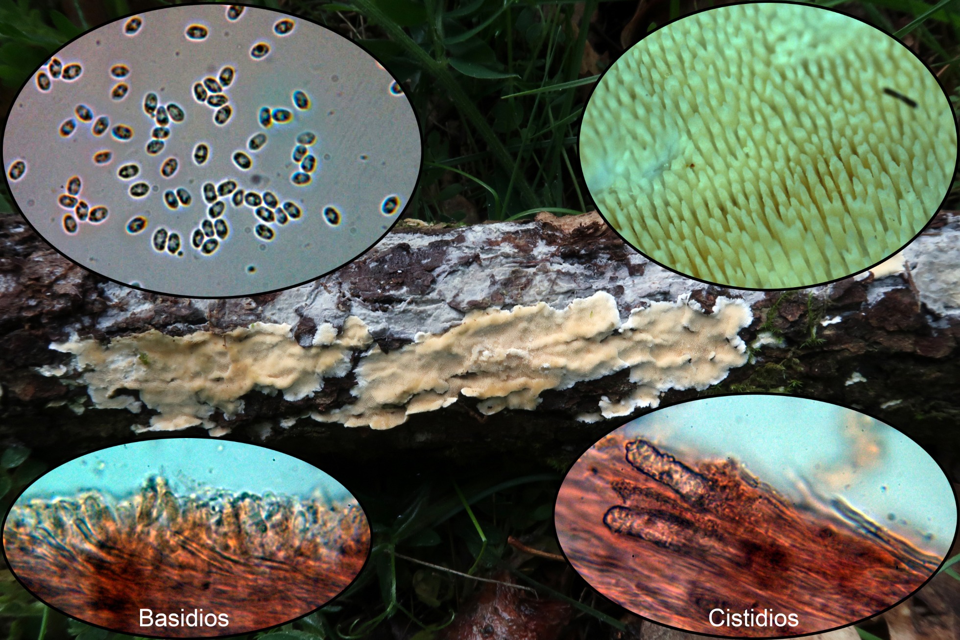 Un Corticial hydnoide amarillo muy común, el Steccherinum ochraceum