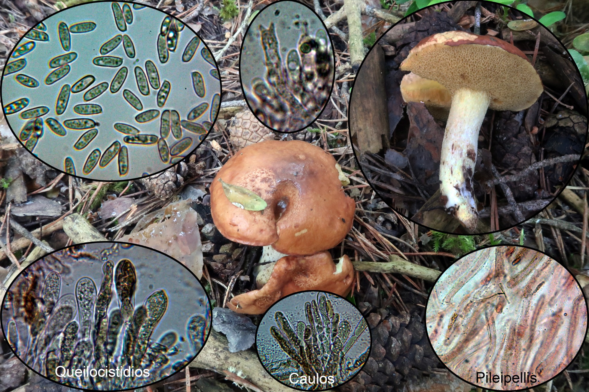 Un Suillus con granulaciones en el pie de carne amarilla al corte y grandes esporas, el Suillus mediterraneensis