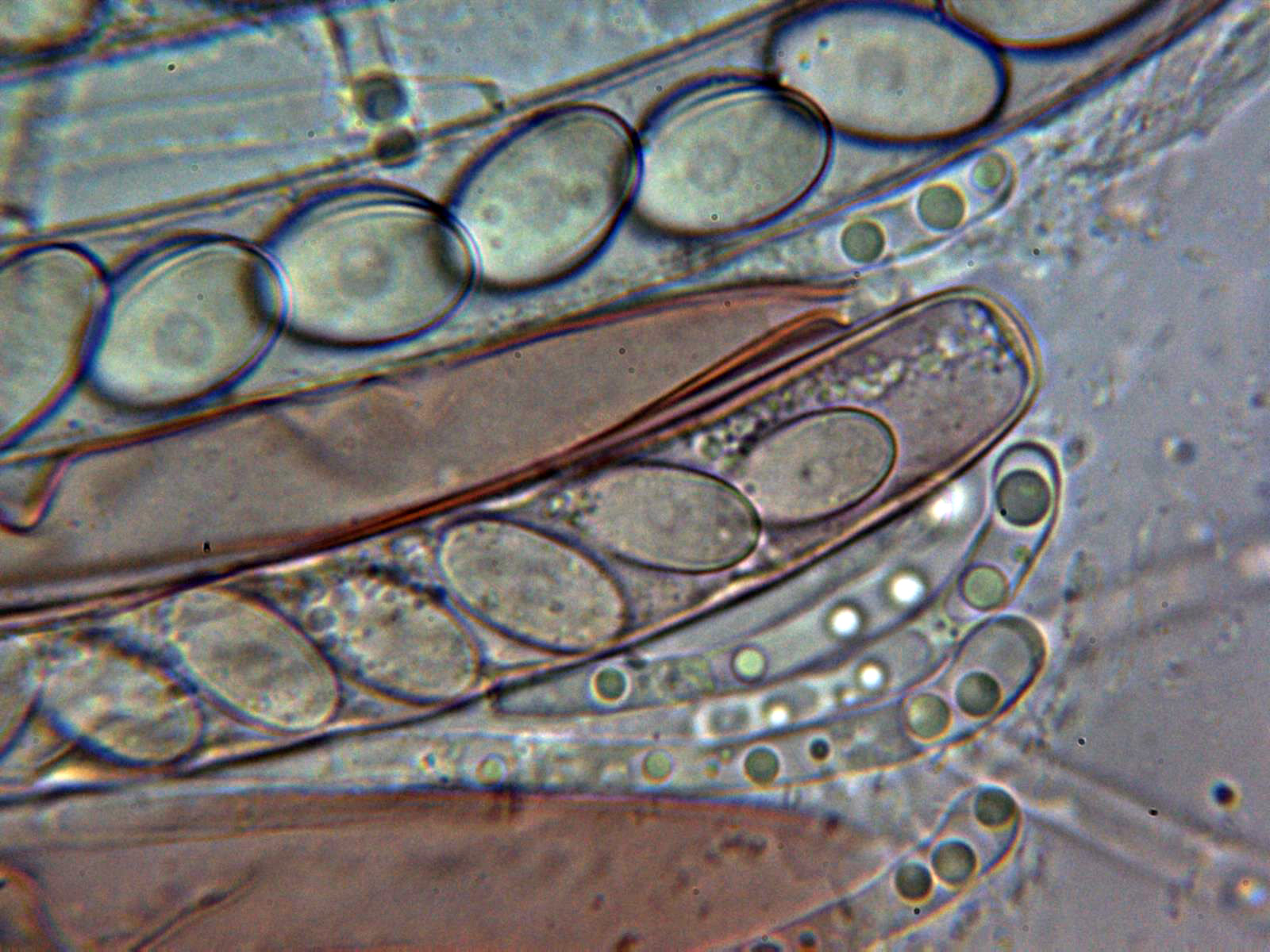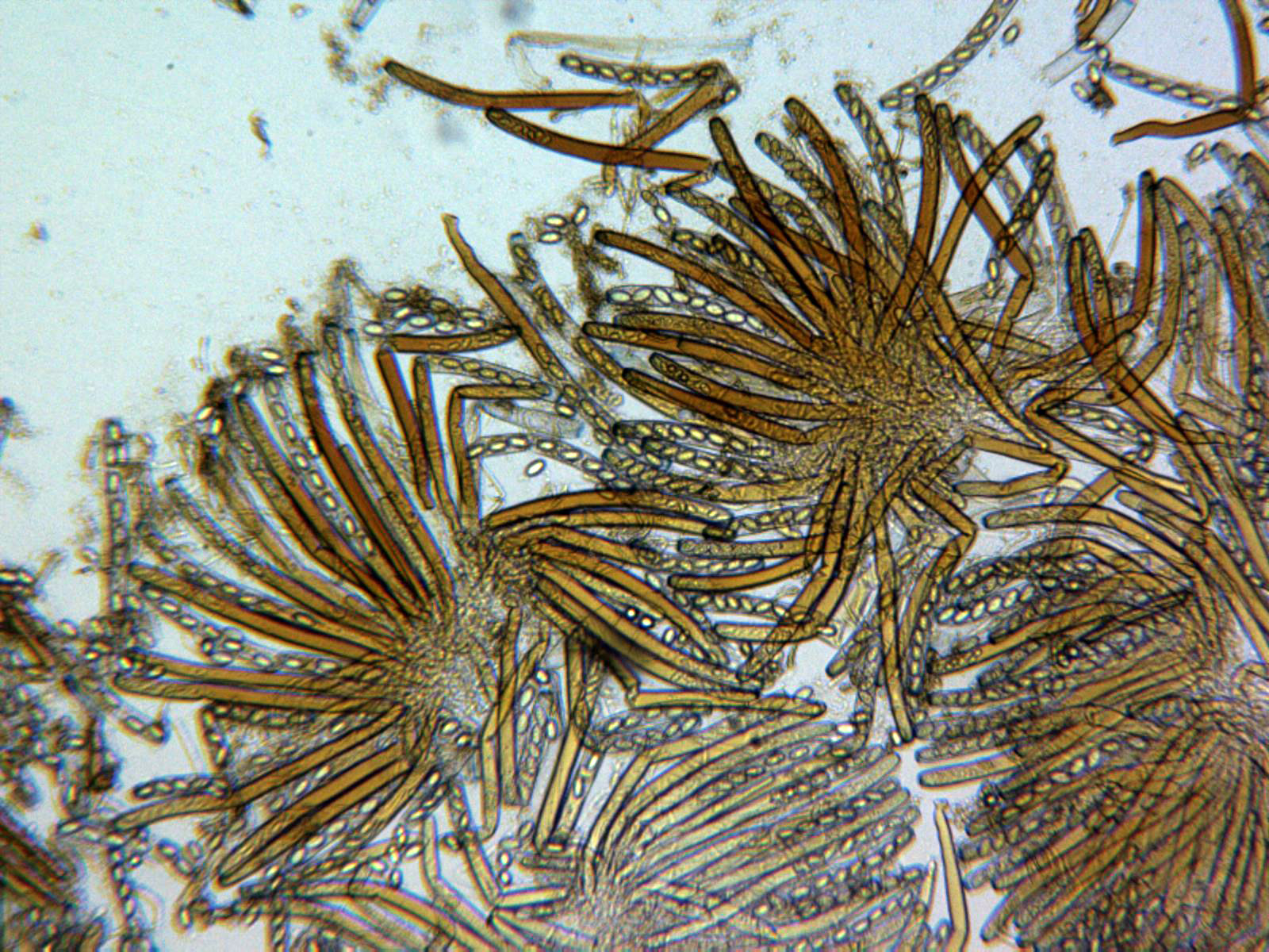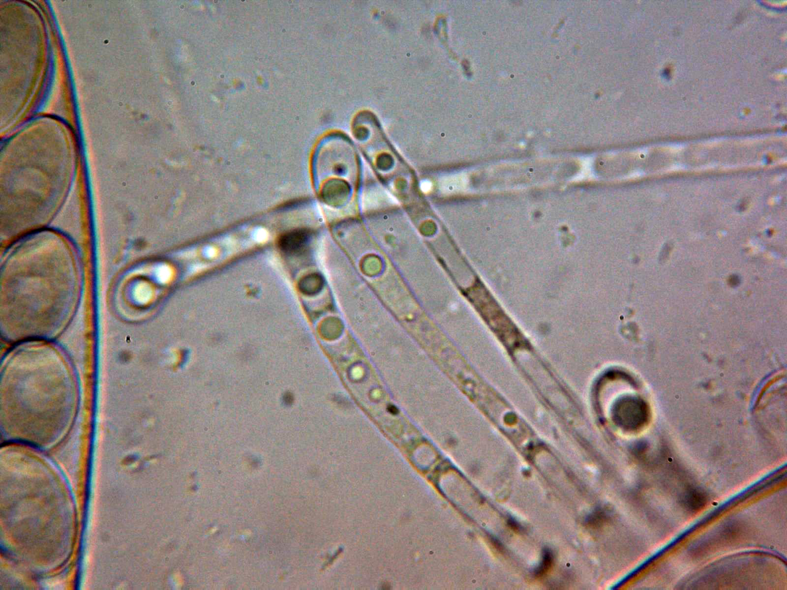 El himenio a 100 aumentos en Reactivo de Melzer.