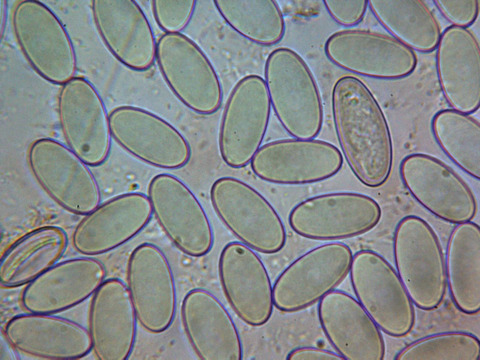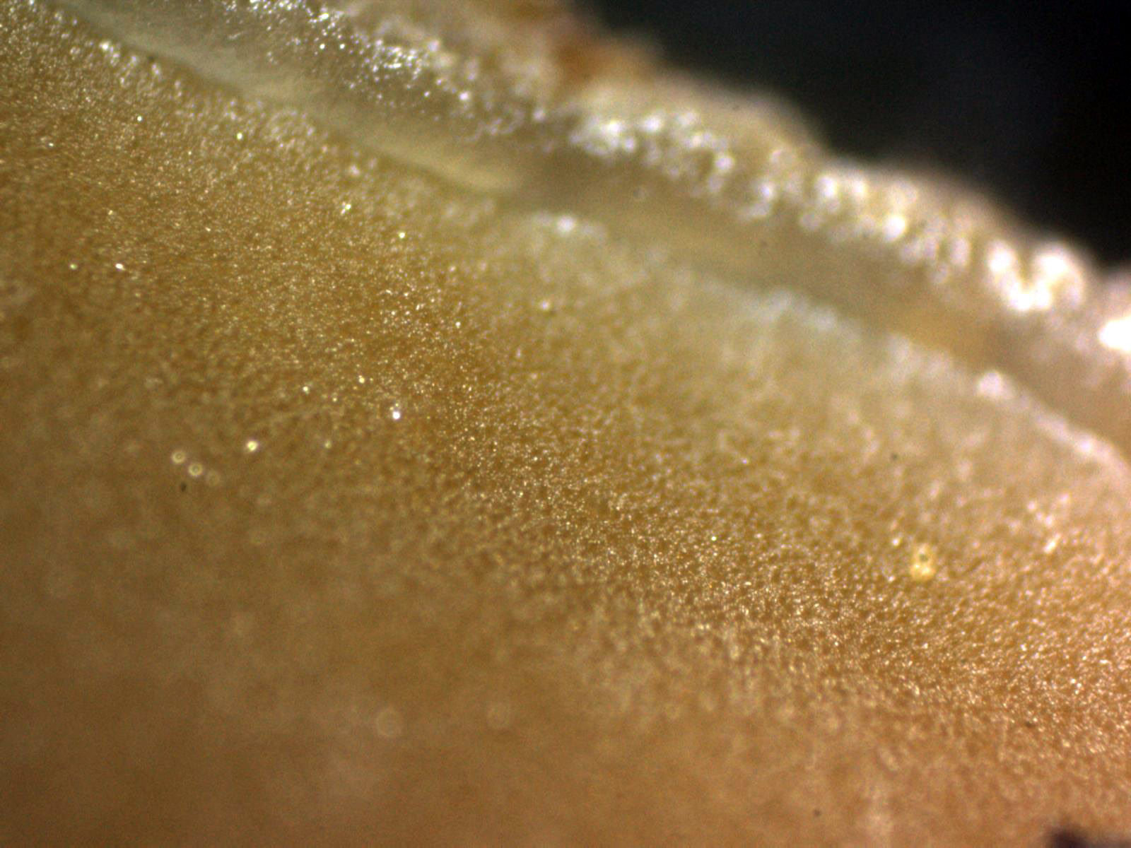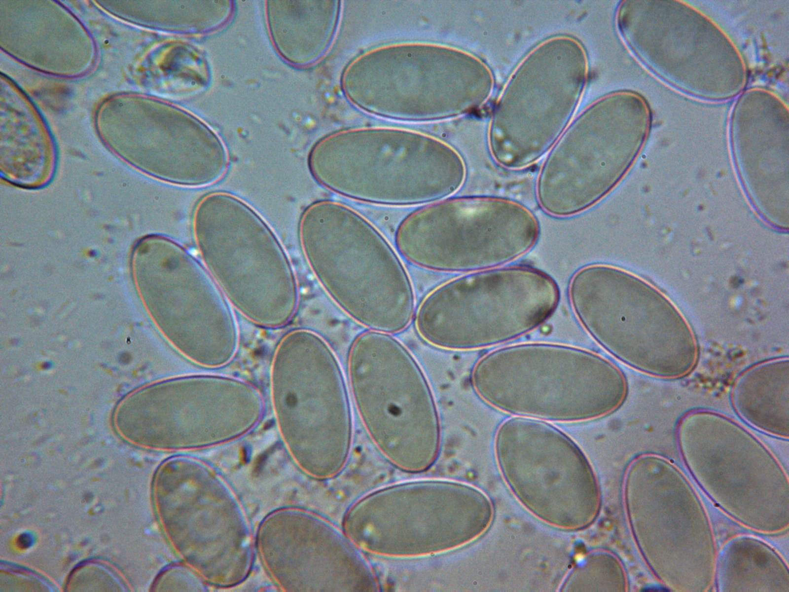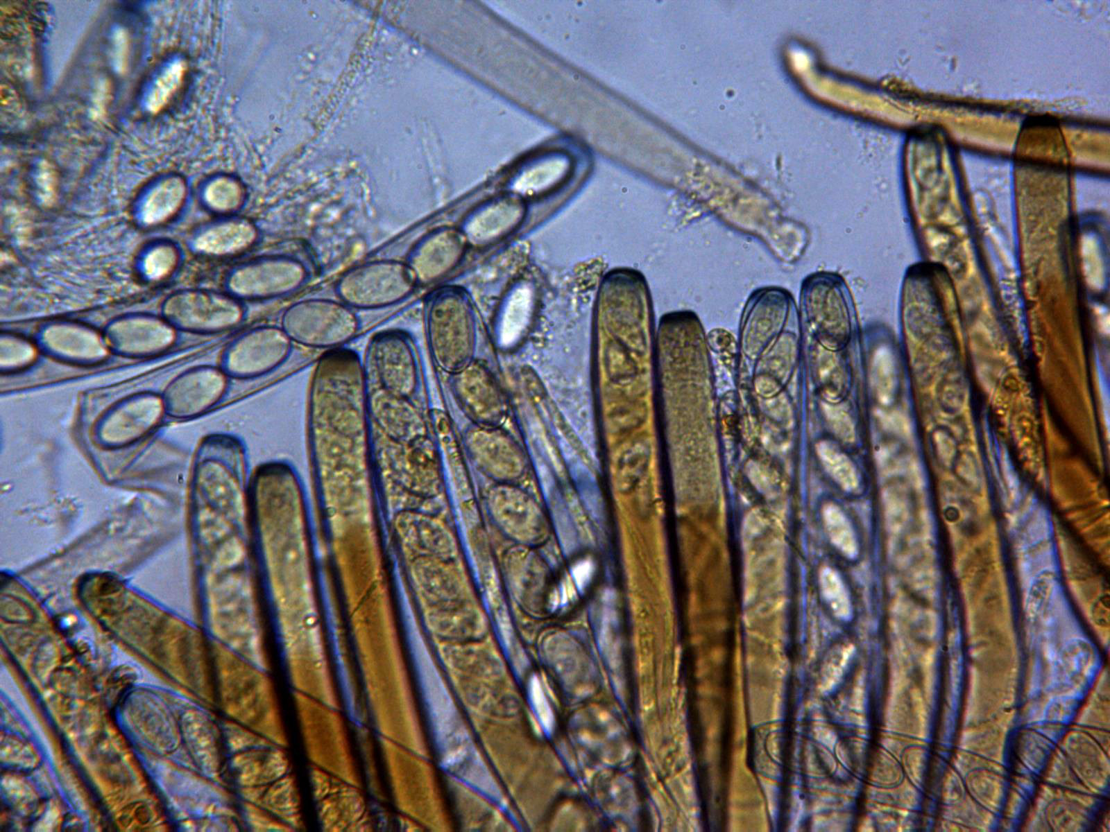 El himenio a 100 aumentos en Reactivo de Melzer.