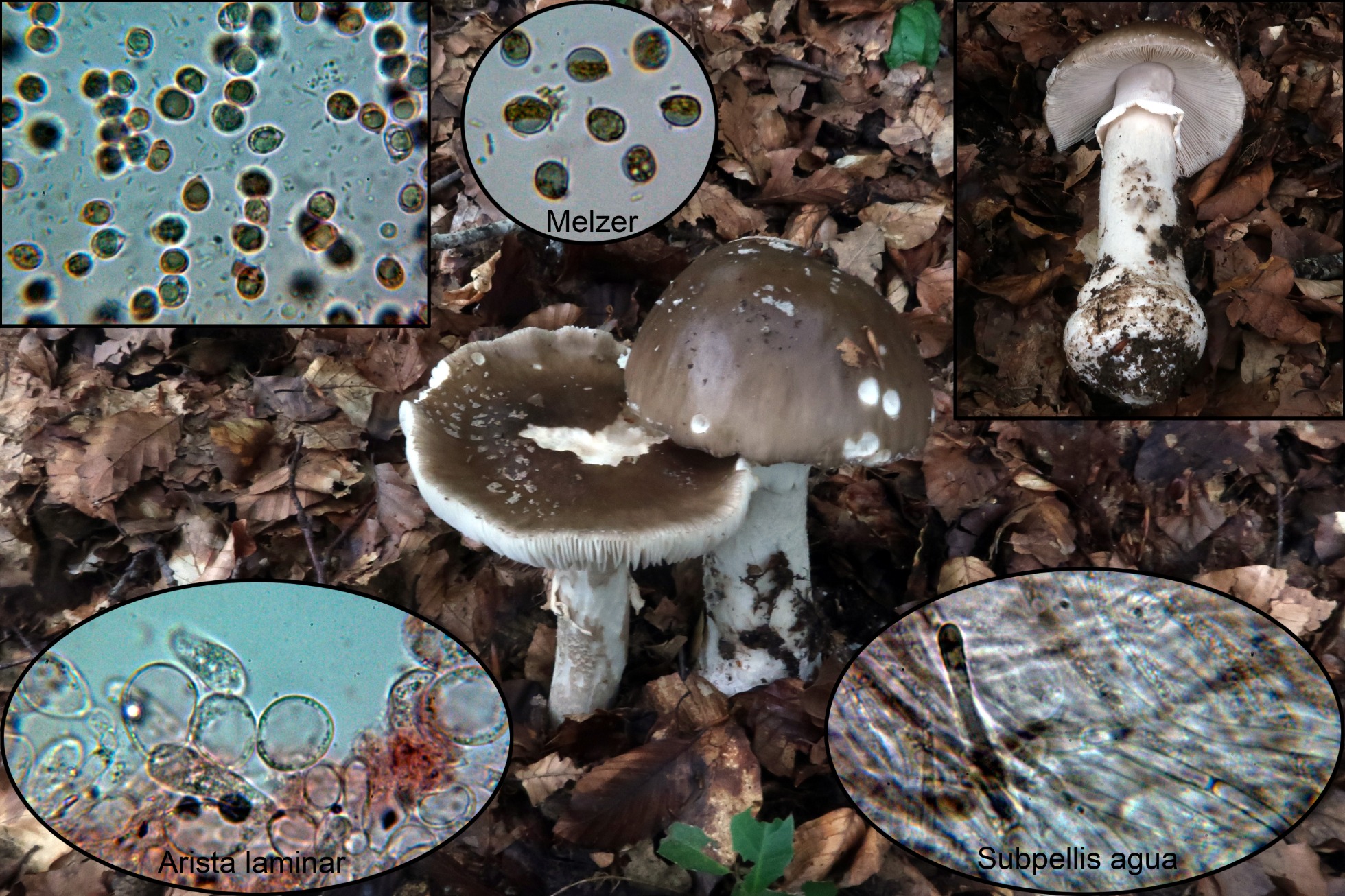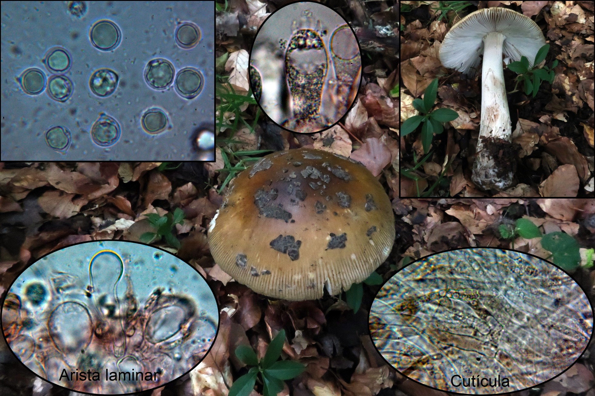 Y para terminar con los cromos nuevos una Amanita que me faltaba, con restos de velo grisáceos en el sombrero y esporas inamiloides, la Amanita ceciliae