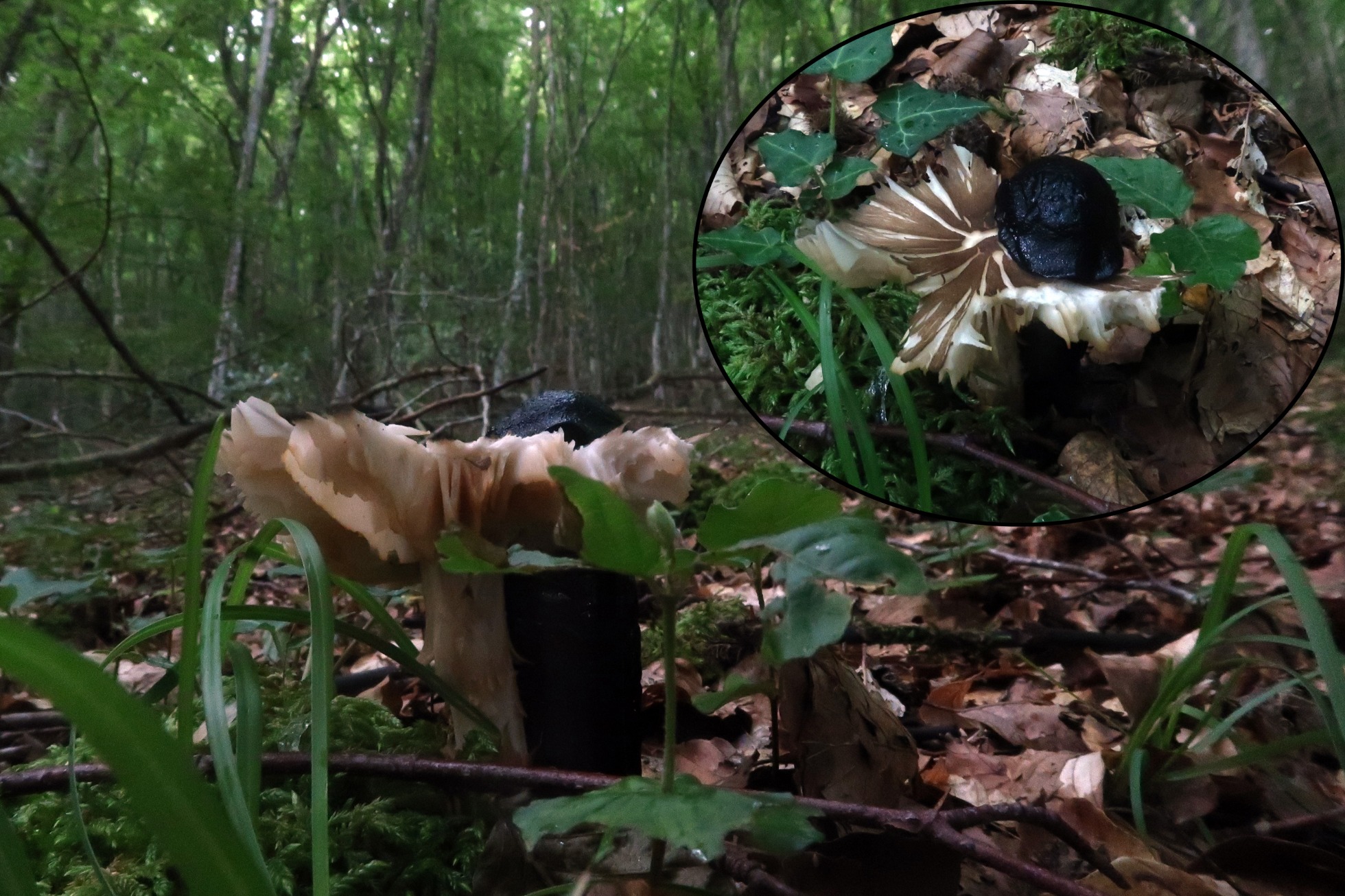 Y una típica de hayedo que estaba siendo literalmente arrasada por un macrolimaco, la Megacollybia platyphylla