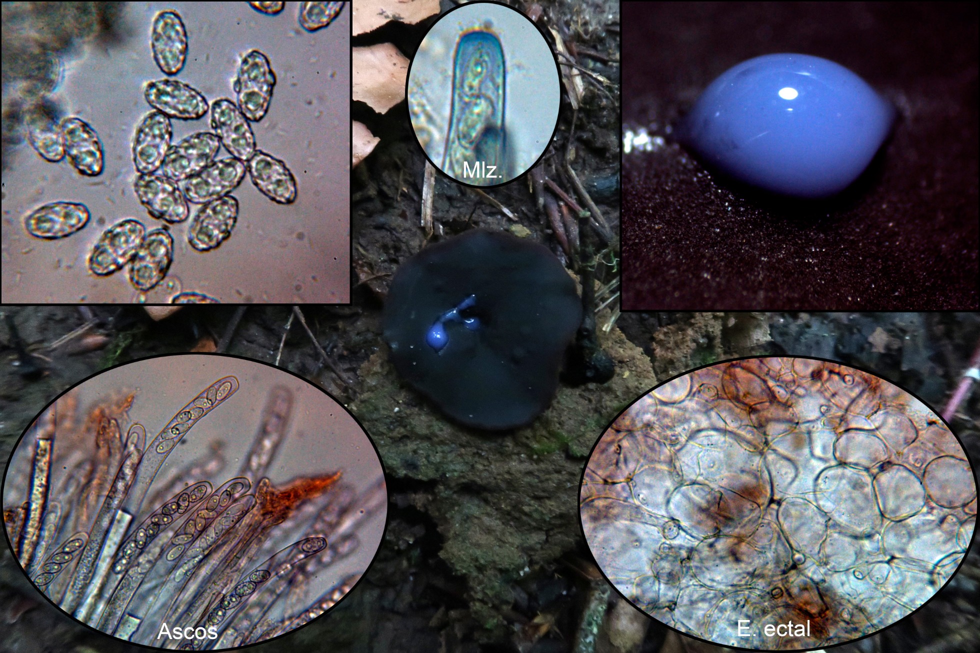 Una Peziza con látex azul, la Peziza saniosa