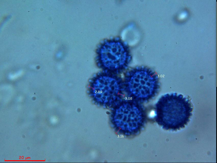 Medidas acordes con las citadas en las Claves de Scutellinias Europeas donde se citan unas medidas de 14 a 17 µm. de diámetro.
