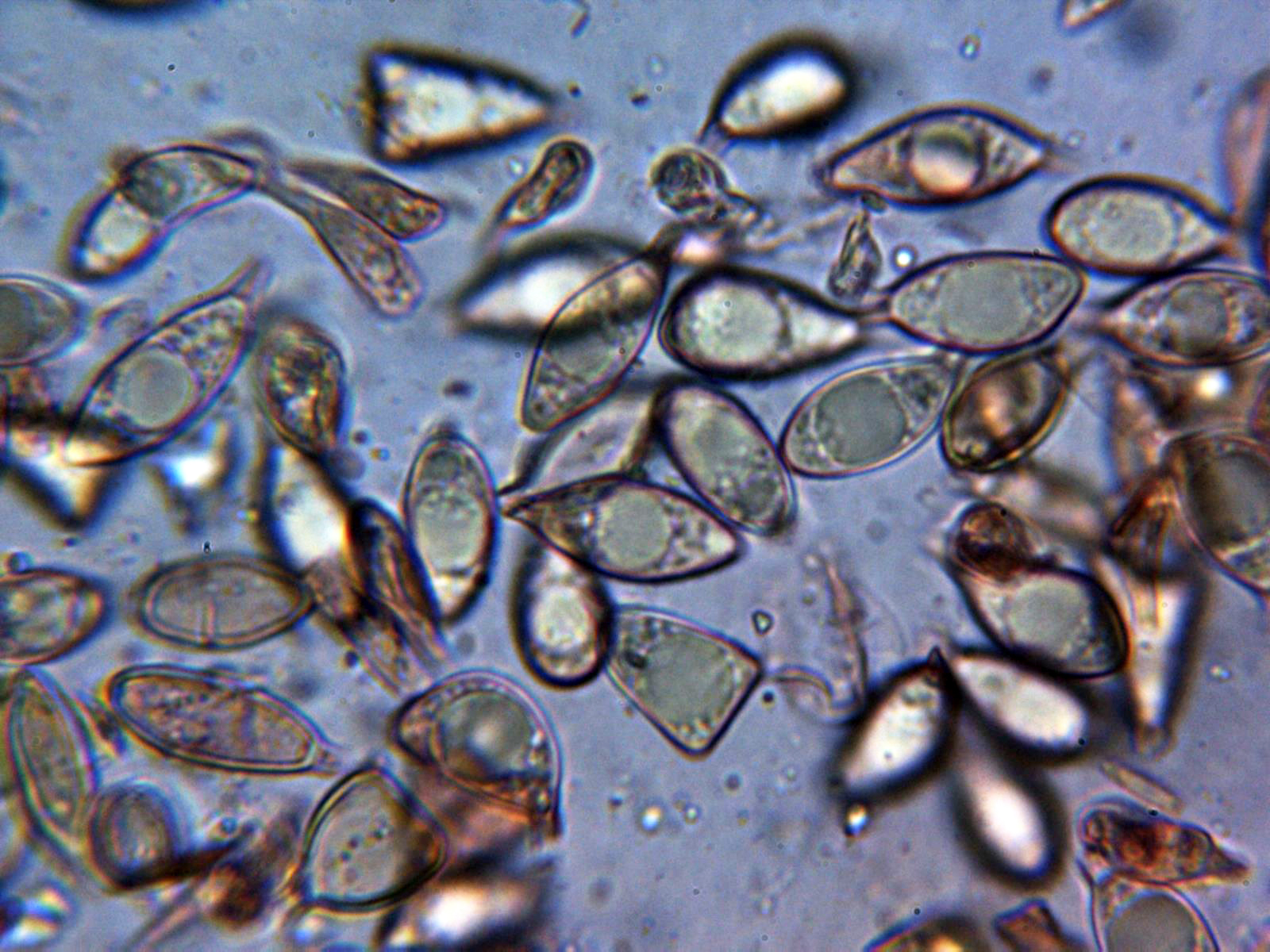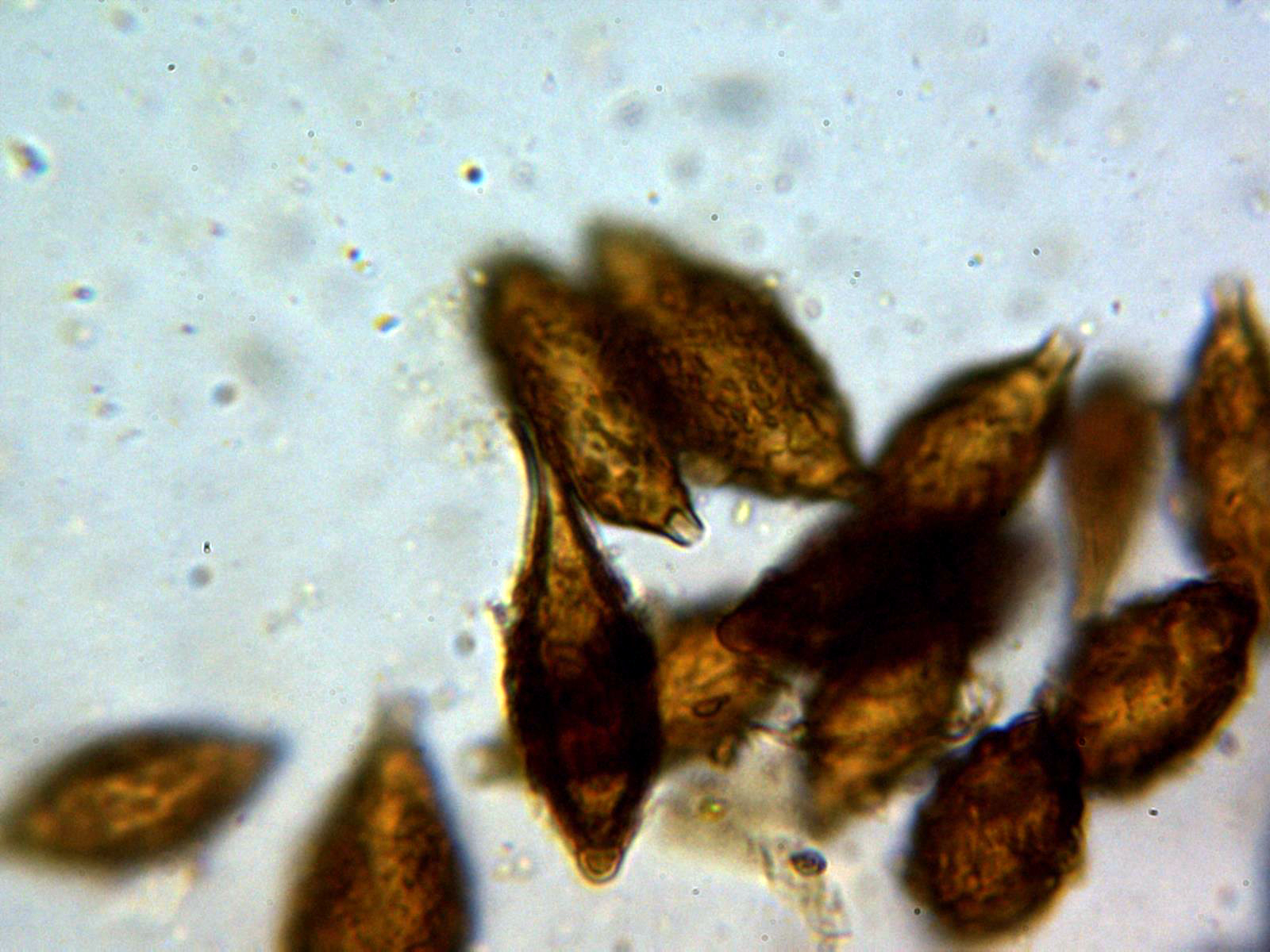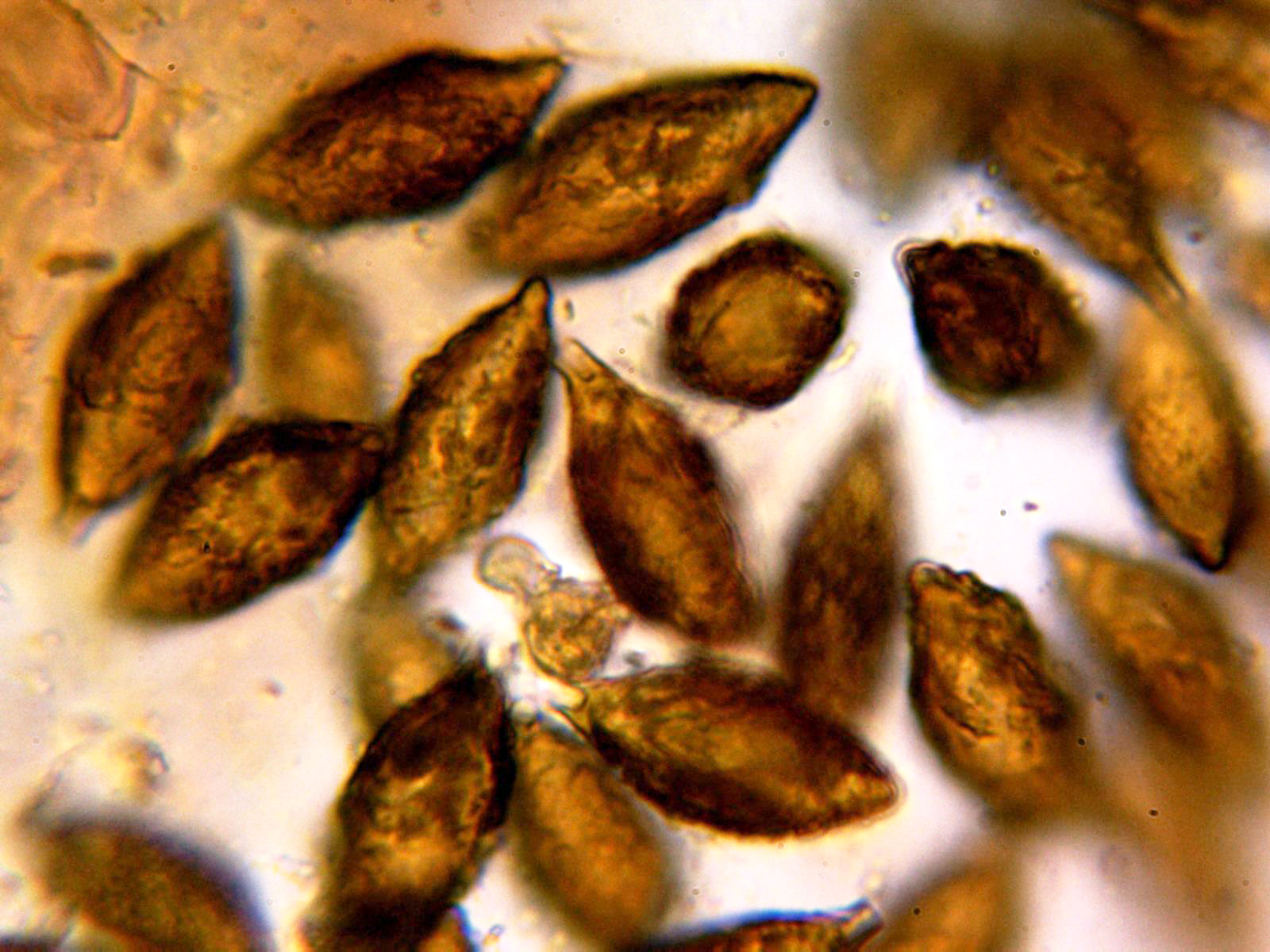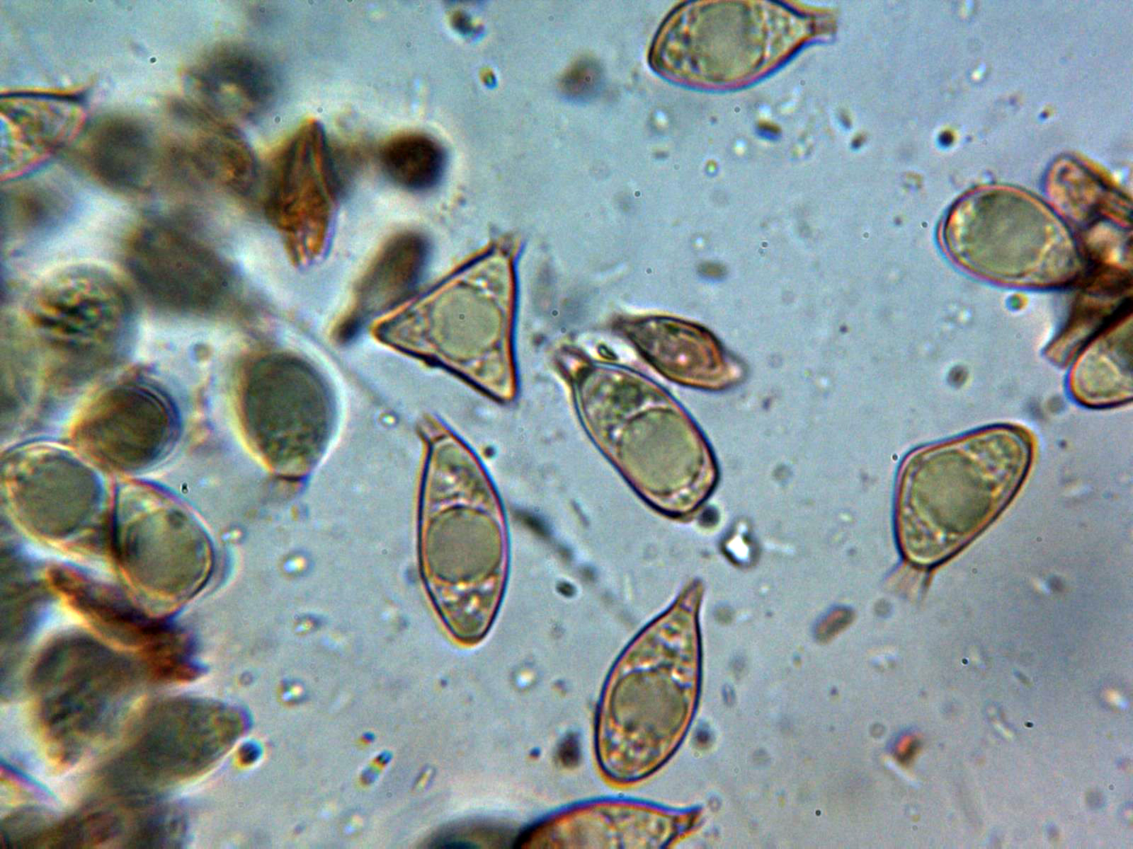 Y las esporas, con una gran vacuola y algunas de ellas hasta incluso triangulares:
