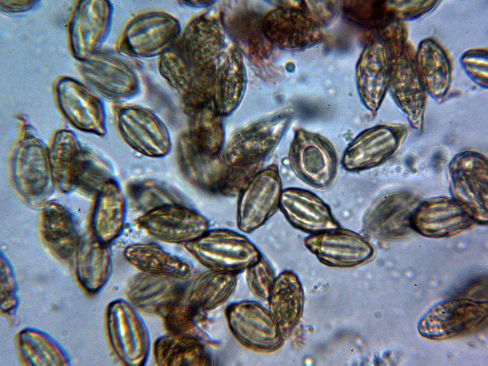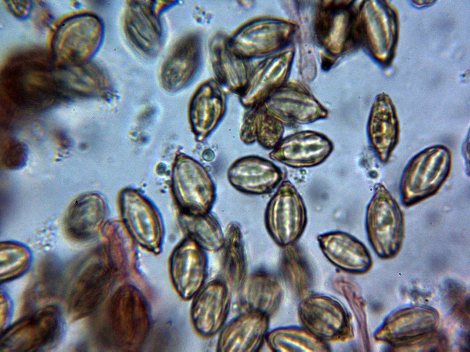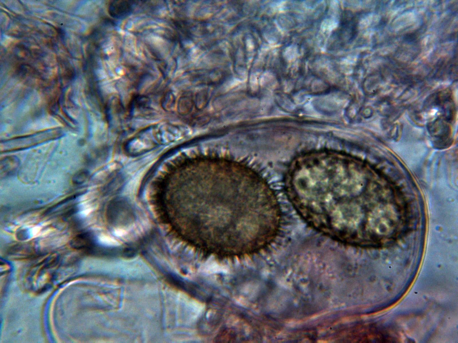 Y las esporas, con una gran vacuola y algunas de ellas hasta incluso triangulares: