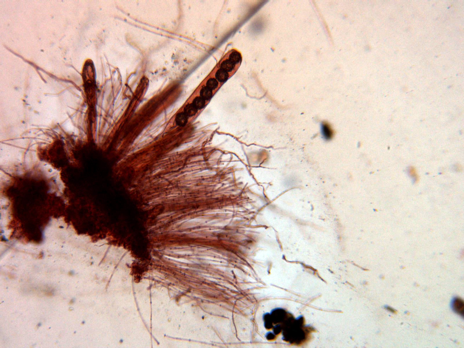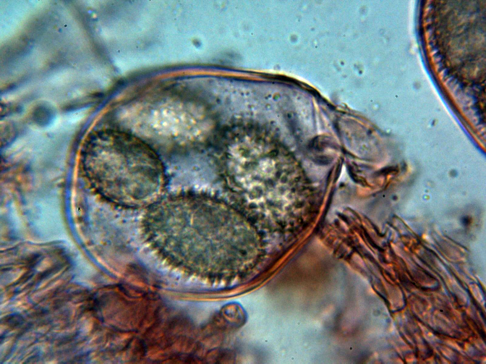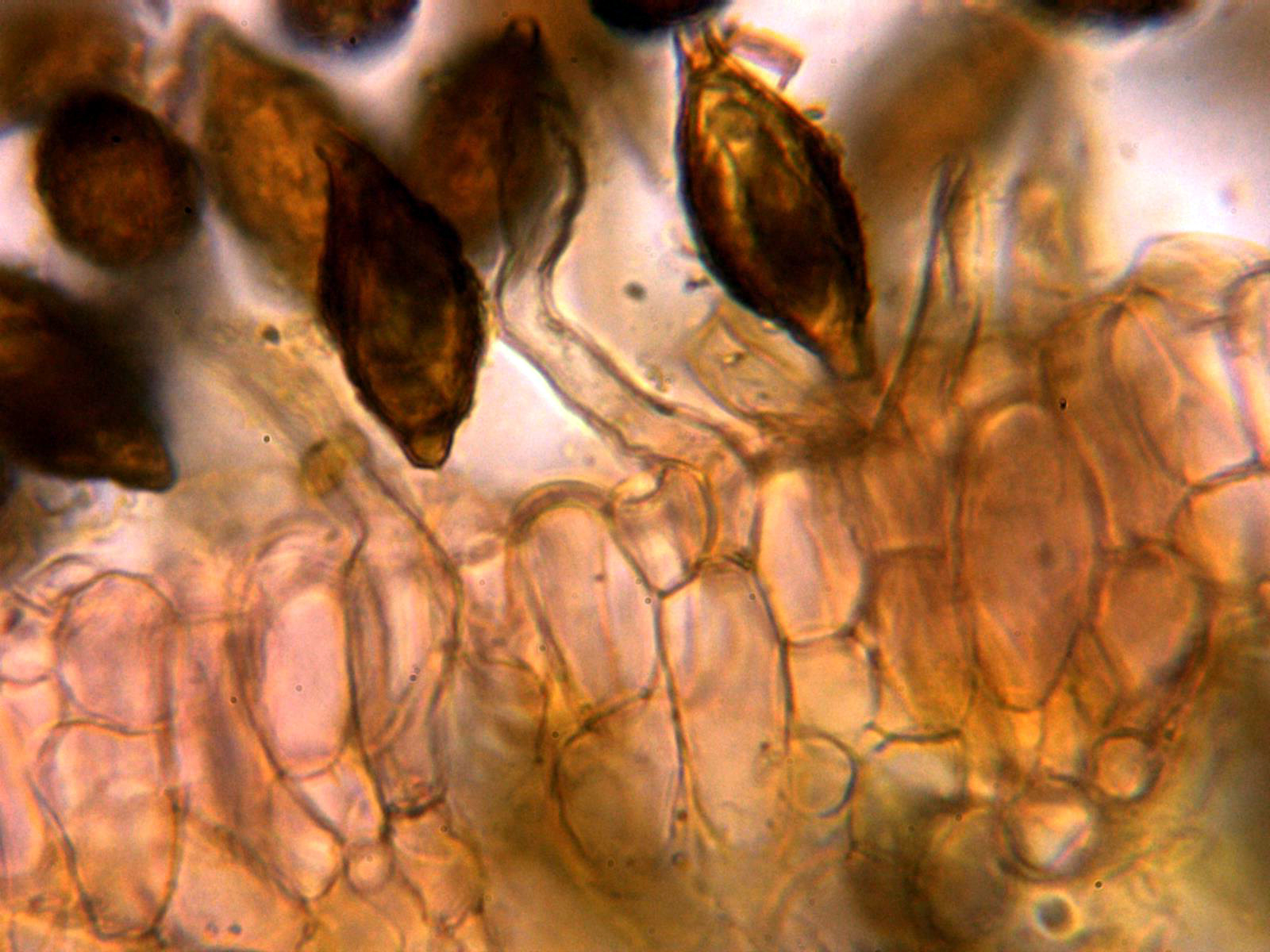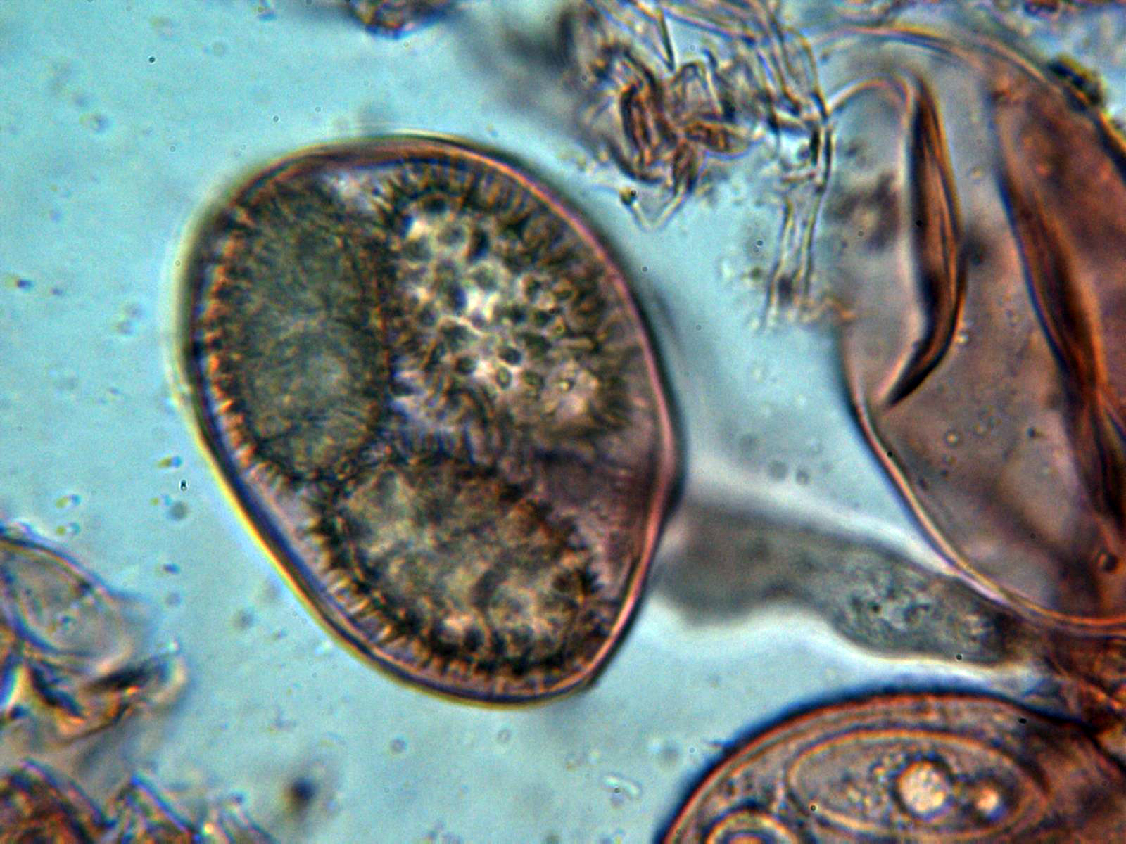 Y las esporas, con una gran vacuola y algunas de ellas hasta incluso triangulares: