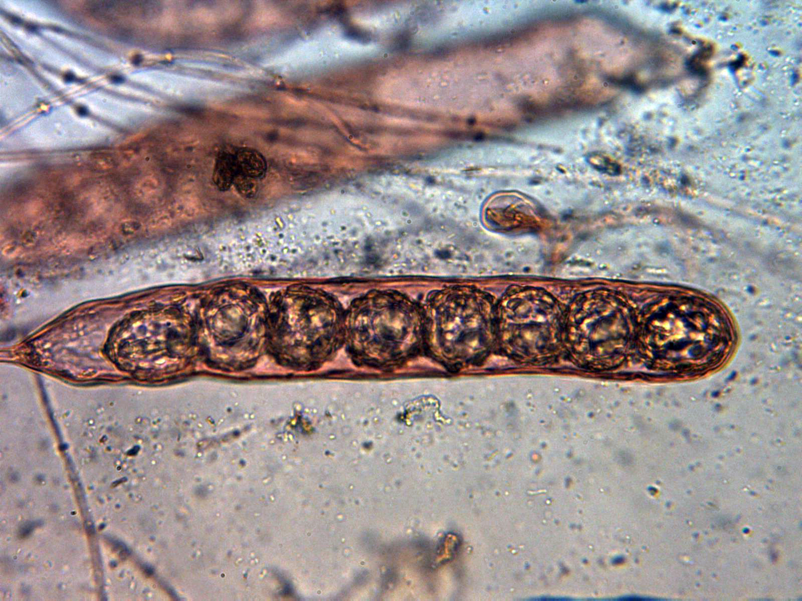 Ascos con una cantidad variable de esporas en su interior: