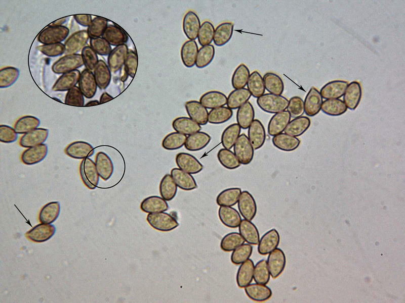 Añado una imagen de las esporas donde remarco estos detalles: