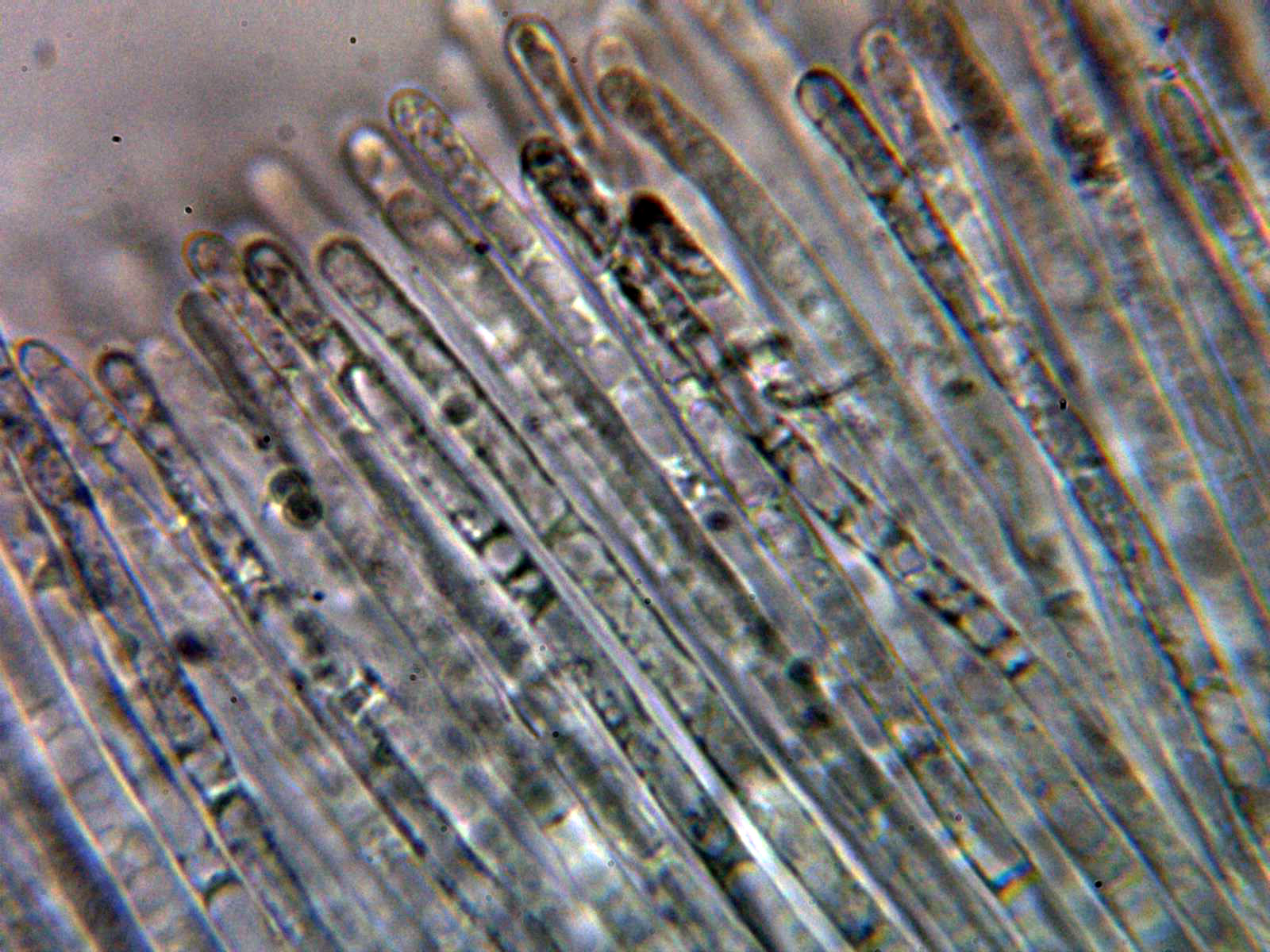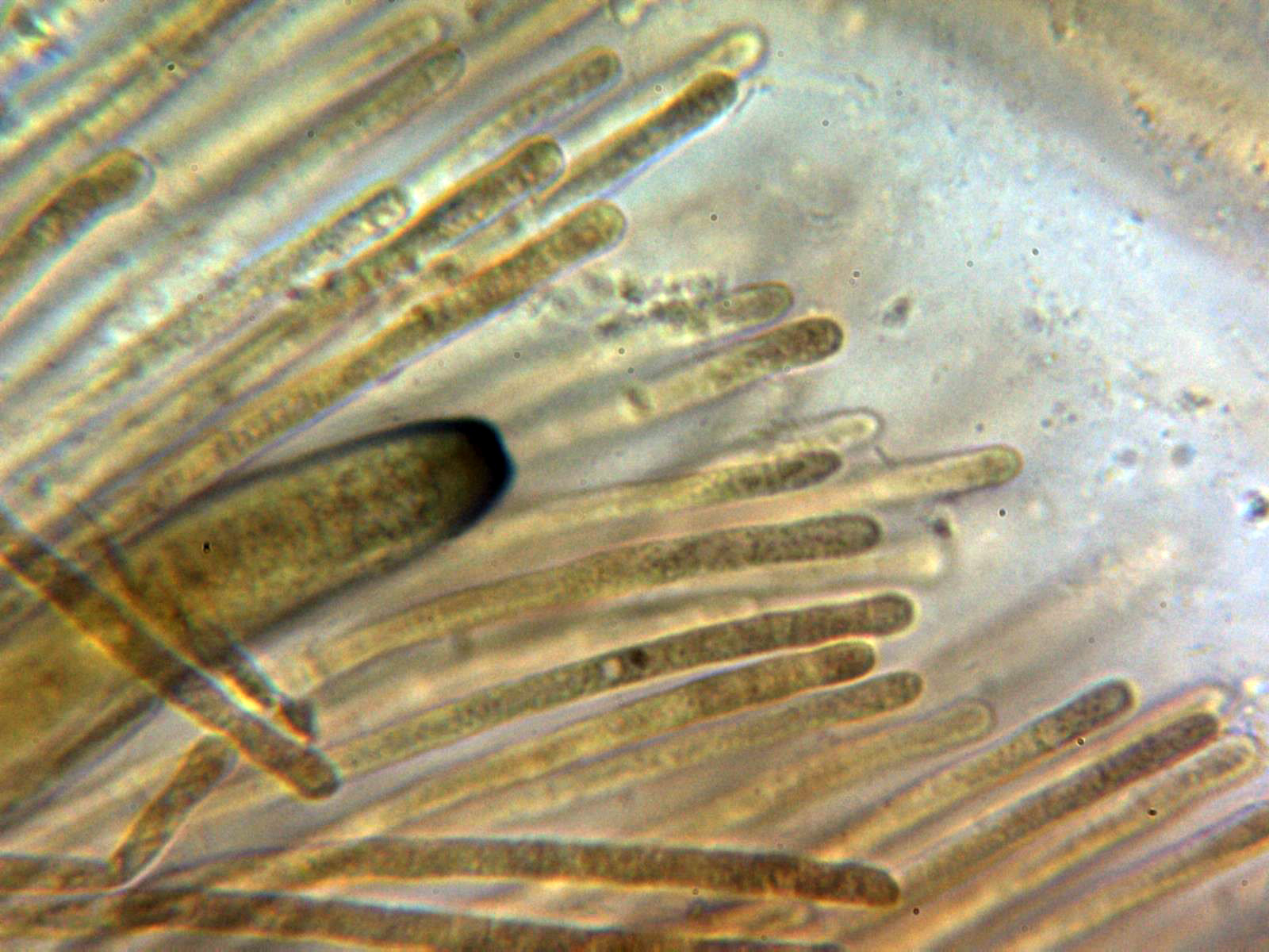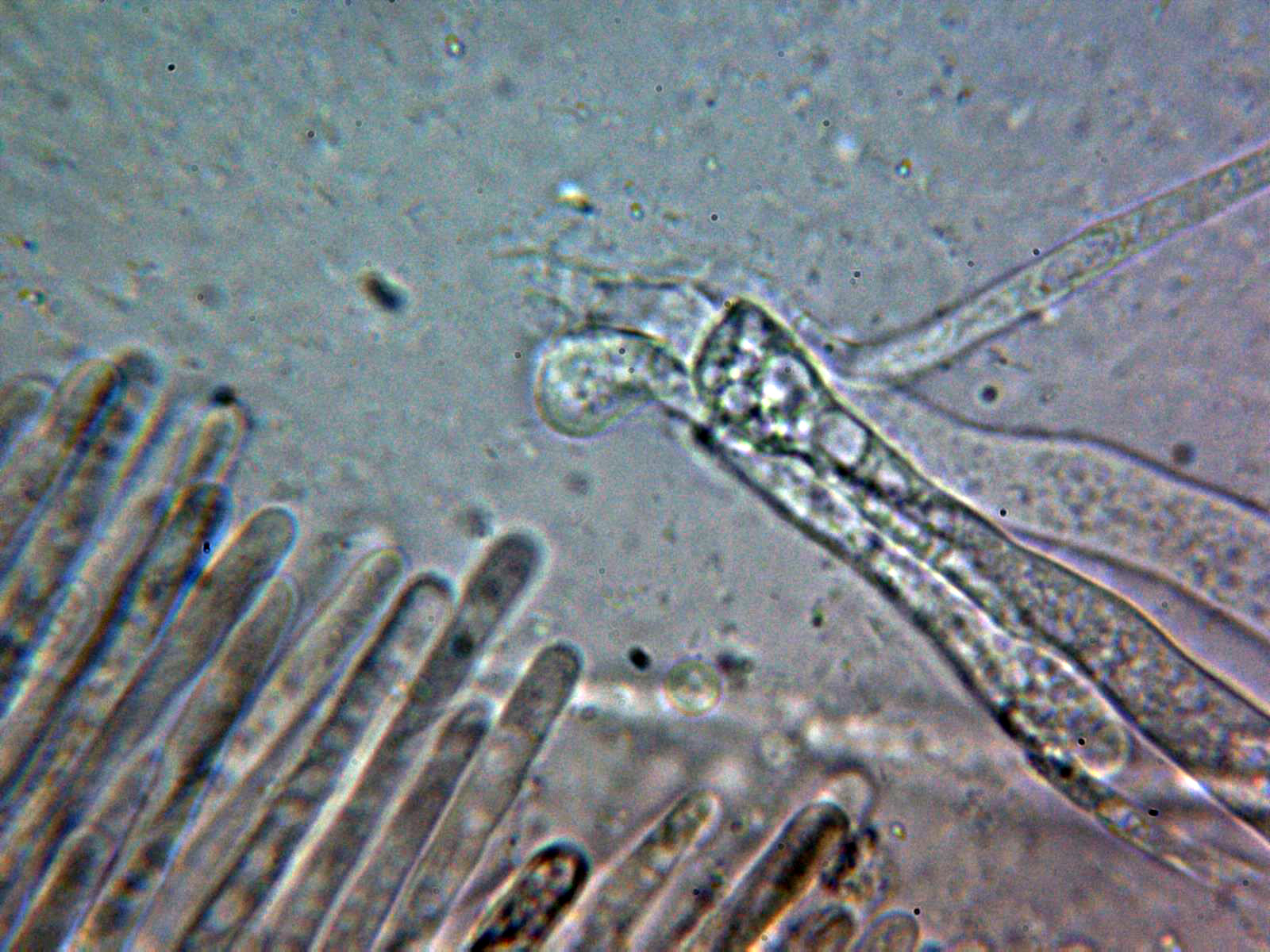 Al tratarse de un ejemplar inmaduro, teniendo en cuenta sus considerables dimensiones y por el aspecto interior del himenio, en su momento pensé que quizás se trataría de un primordio de Sarcosphaera coronaria, al no poder obtener esporas y dado que la morfología de las paráfisis no me encajaba con la Sarcosphaera coronaria y me recordaba a una posible Peziza, es por lo que decidí recurrir al análisis molecular. La secuenciación ITS determinó que se trataba con una coincidencia del 100% de Peziza ampelina (AF491629)