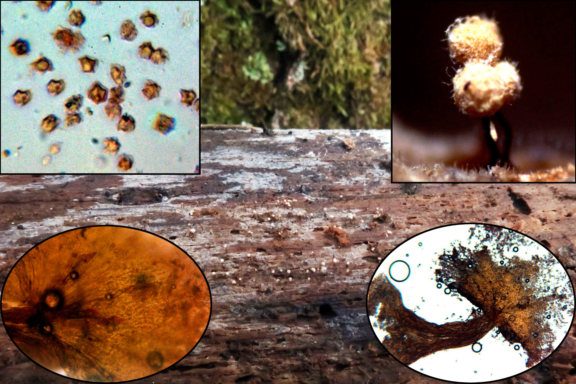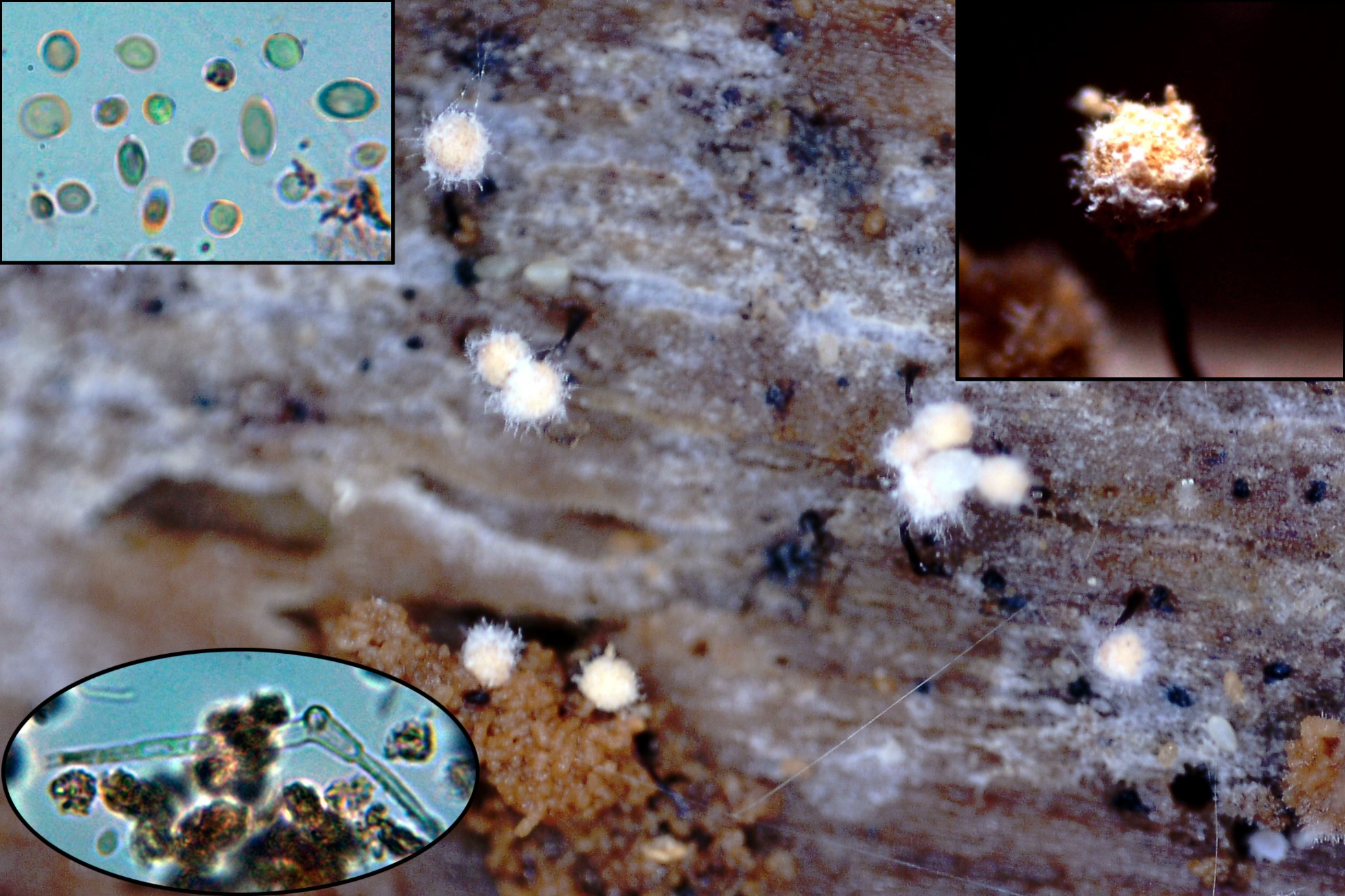 Y no solo tendríamos uno, sinó dos cromos ya que esta Cribraria vulgaris estaría parasitada por Polycephalomyces tomentosus, actualmente denominado Blistum tomentosum