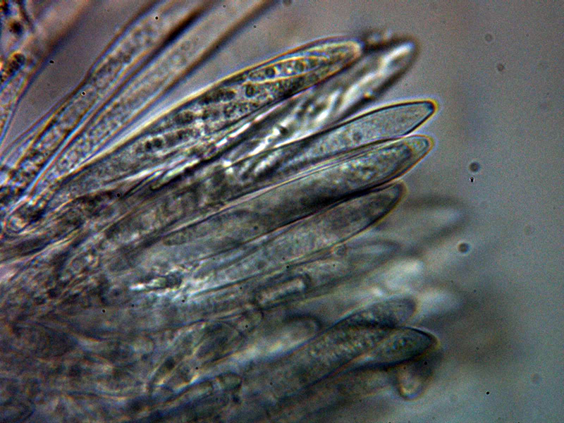 Mollisia aff. elegantior (Graddon) Baral (2008). Microscopía.