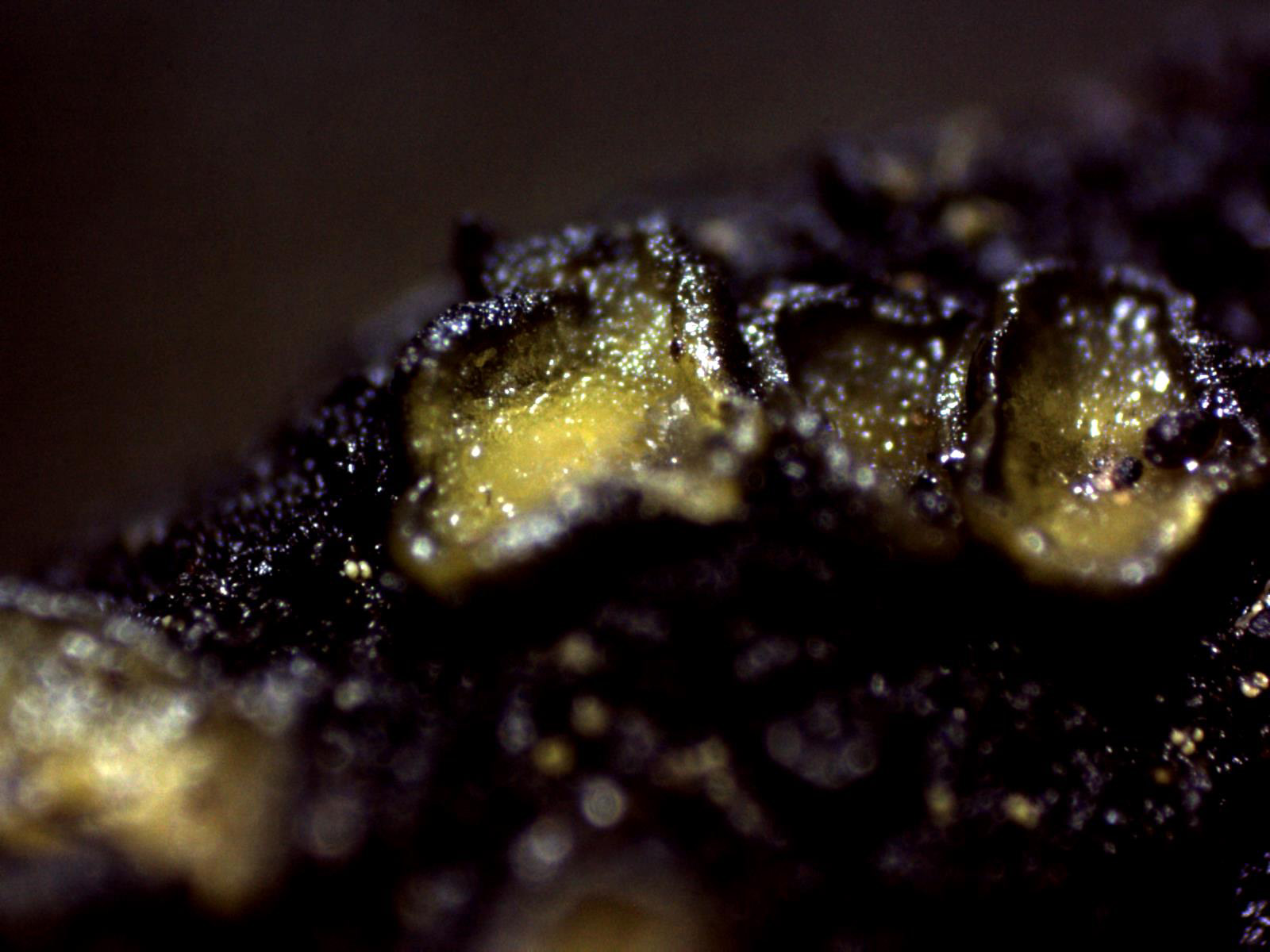 Unos pequeños apotecios fotografiados el 6 de Junio sobre un pequeño tronco de roble (Quercus sp.).