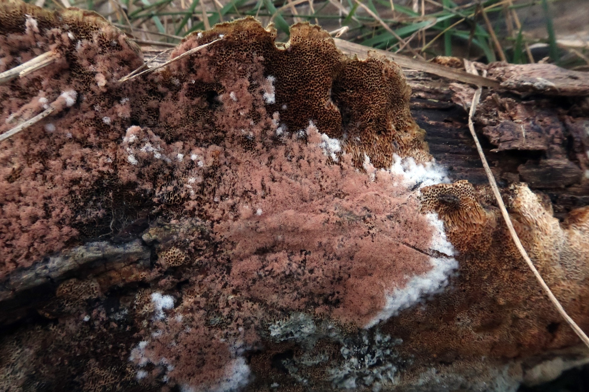Hongo sobre el himenio degradado de un Polyporal