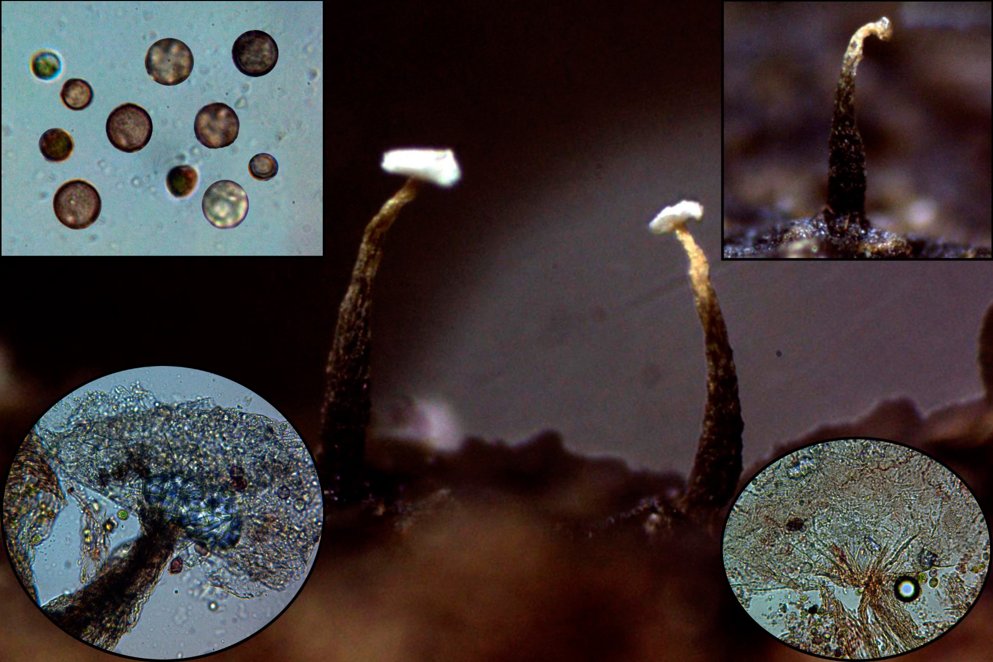 Seguimos con un muy diminuto Mixomiceto, del 6 de Octubre de 2020, con esporocarpos de tan solo entre 0,48 a 0,65 mm. de altura total (según bibliografía entre 0,25 y 0,55 mm.) con una esporoteca globosa de entre 0,6 a 0,8 mm. (según bibliografía entre 0,4 a 0,7mm.) un poco mas anchas en mi estudio al estar aplanadas por la deshidratación. El Echinostelium minutum