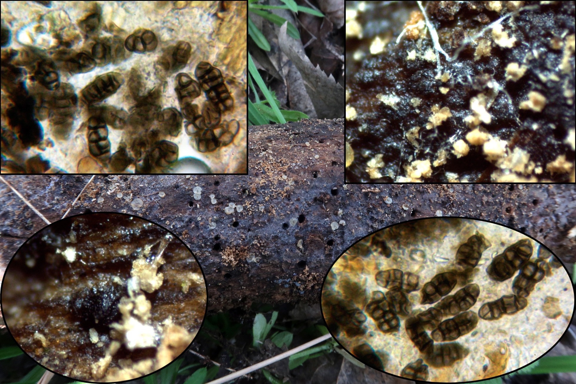 Unos conidios sobre un tronco probablemente de Clematis vitalba (este punto sin confirmar) aunque era muy abundante por la zona, compartiendo espacio con unos ejemplares de Hyalorbilia, tenemos el Murilentithecium aff. clematidis.