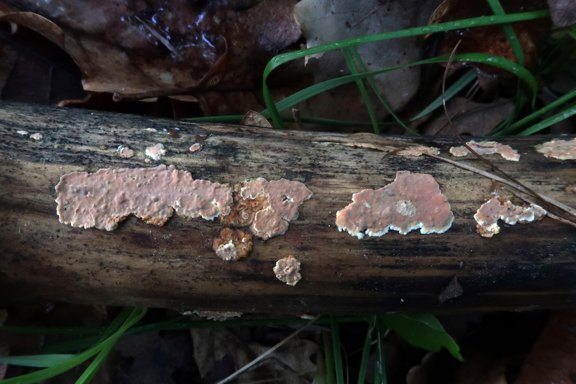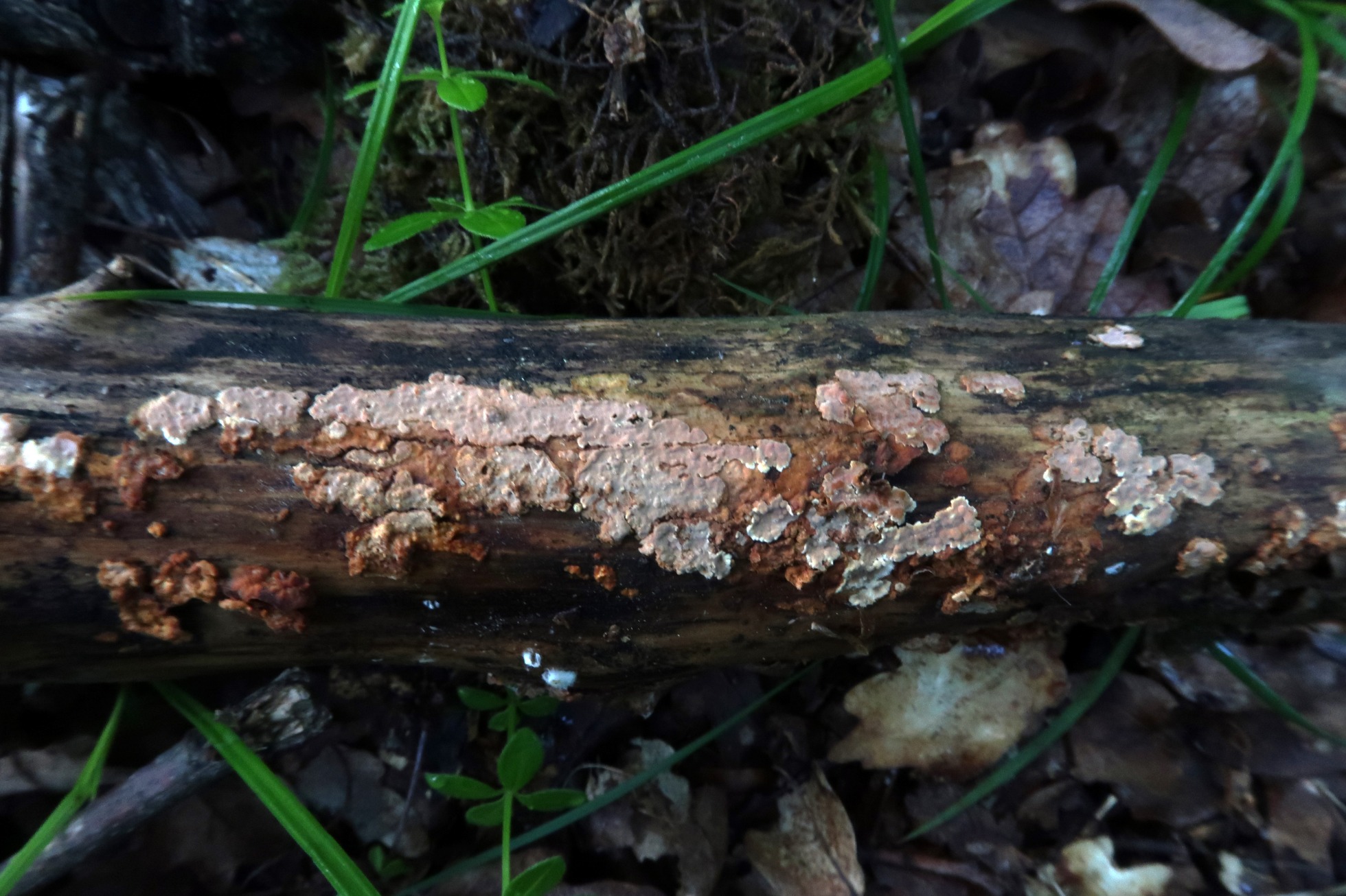 Un Corticial resupinado fotografiado el 6 de Junio de 2021, sobre un tronco tumbado del suelo en un robledal, en aquel momento no me apercibí de la presencia de Boj (Buxus) por la zona y al no encajar con ninguna Peniophora de las descritas en las Claves opté por el análisis molecular determinando que se trataba con una coincidencia del 100% de Peniophora proxima MH856685.