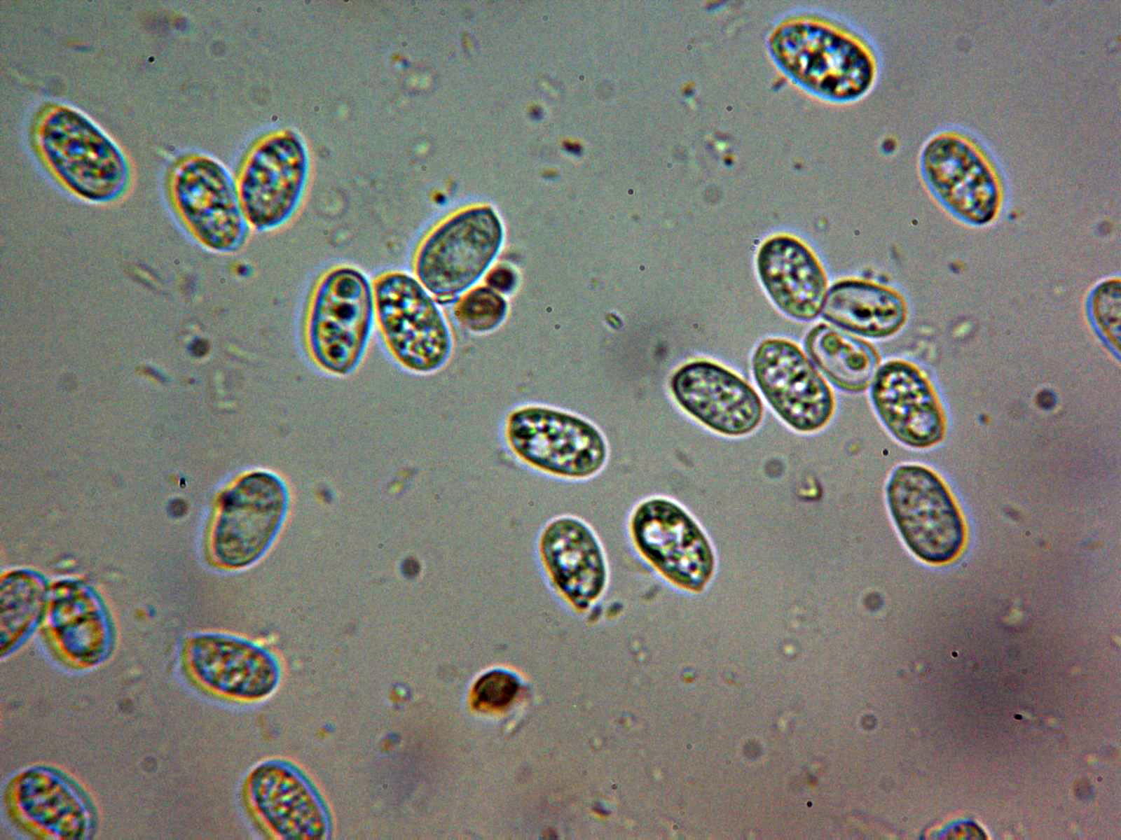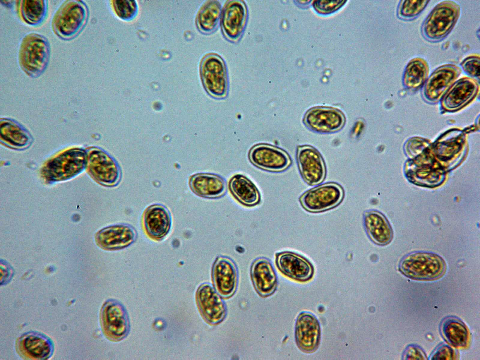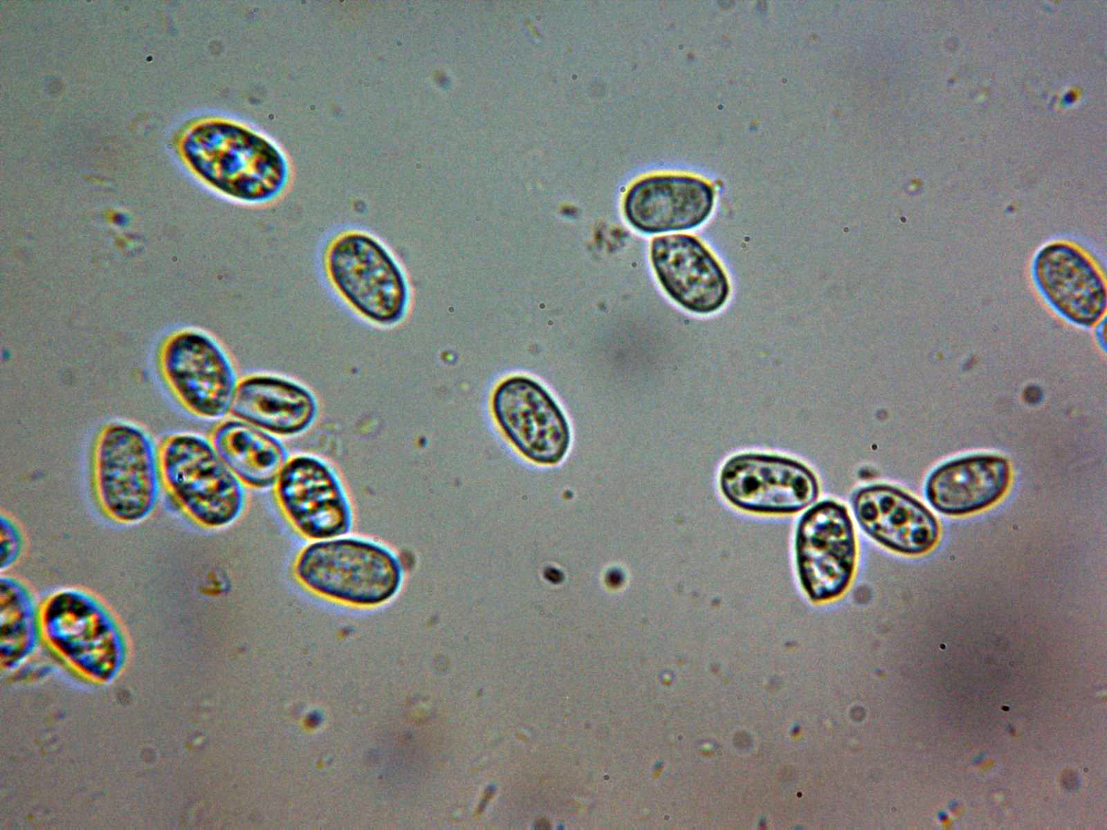 Estas esporas con una anchura algo por debajo de la citada para la especie.