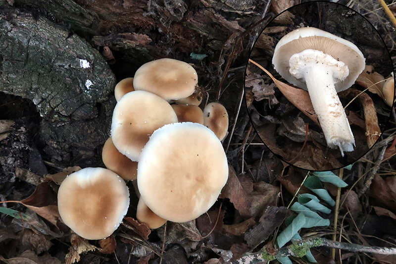 En hayedo, con el pie muy radicante la Xerula radicata, actualmente Hymenopellis radicata