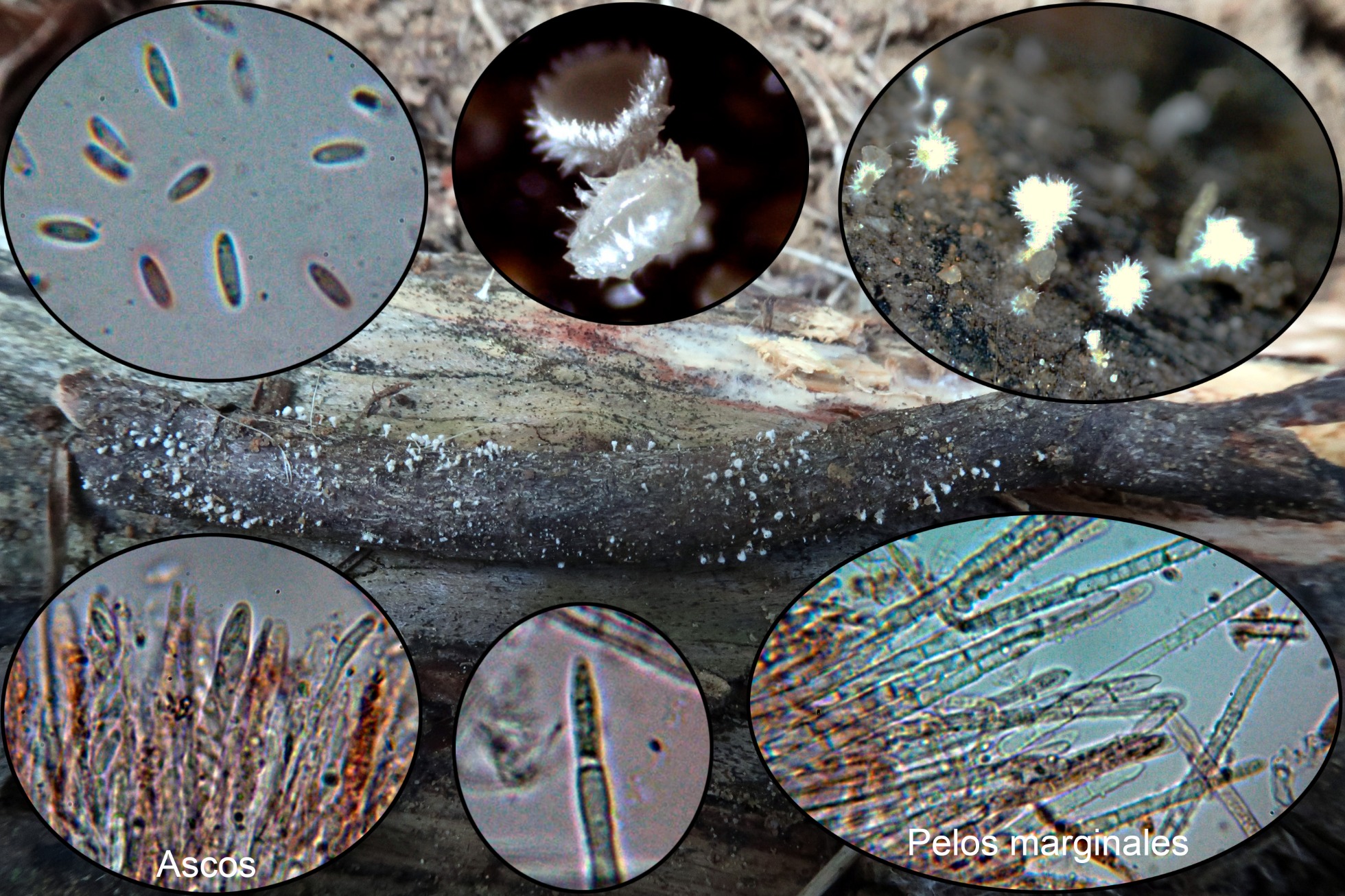 Un muy diminuto ascomiceto, parecido a su hermana la Dasyscyphella nivea, pero con pelos marginales más largos y con terminaciones más agudas, la Dasyscyphella montana