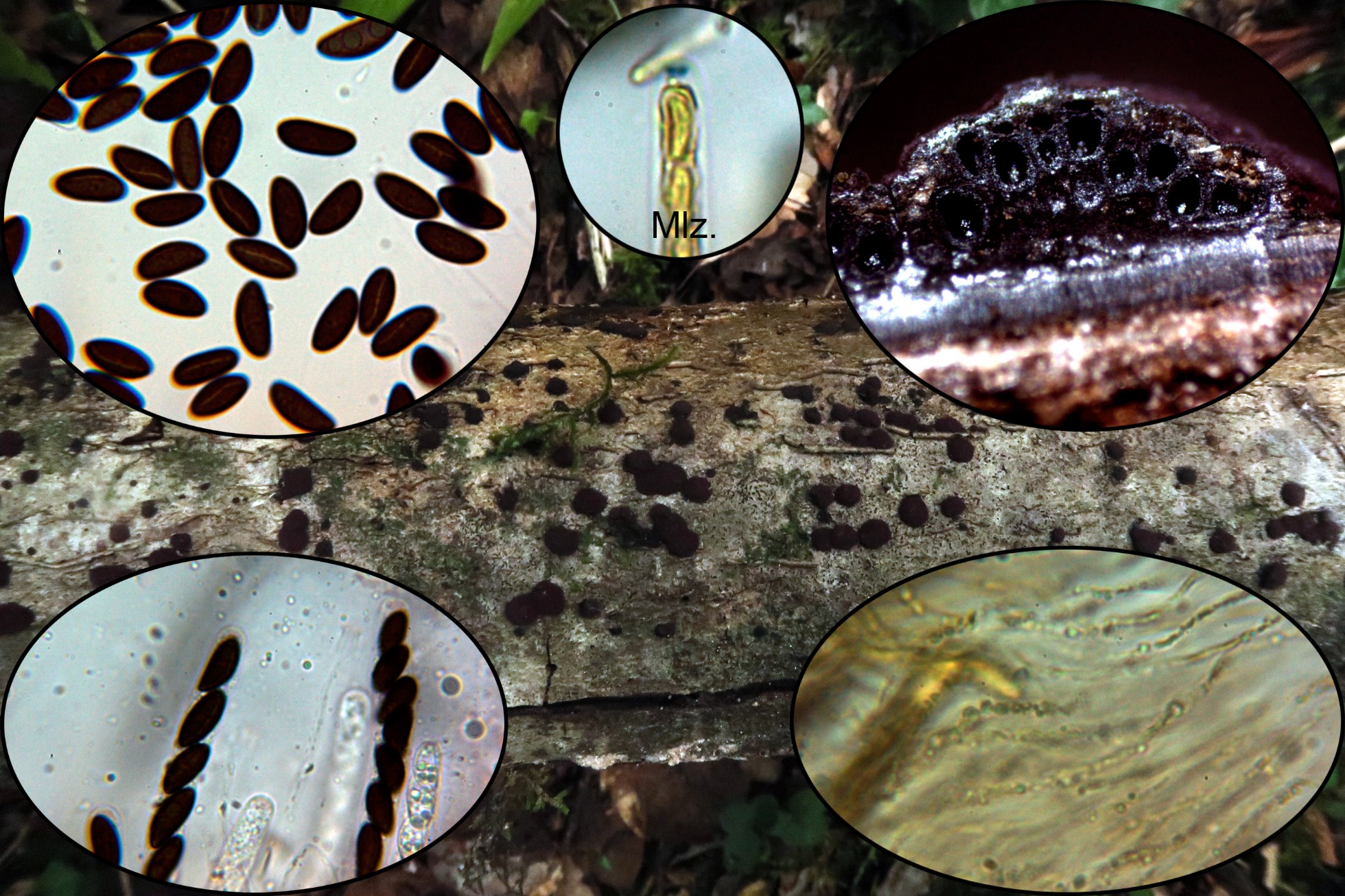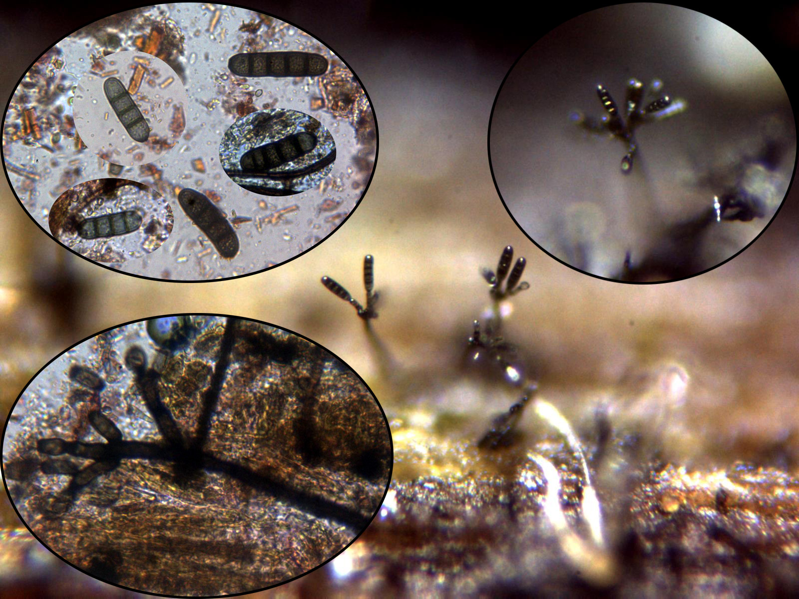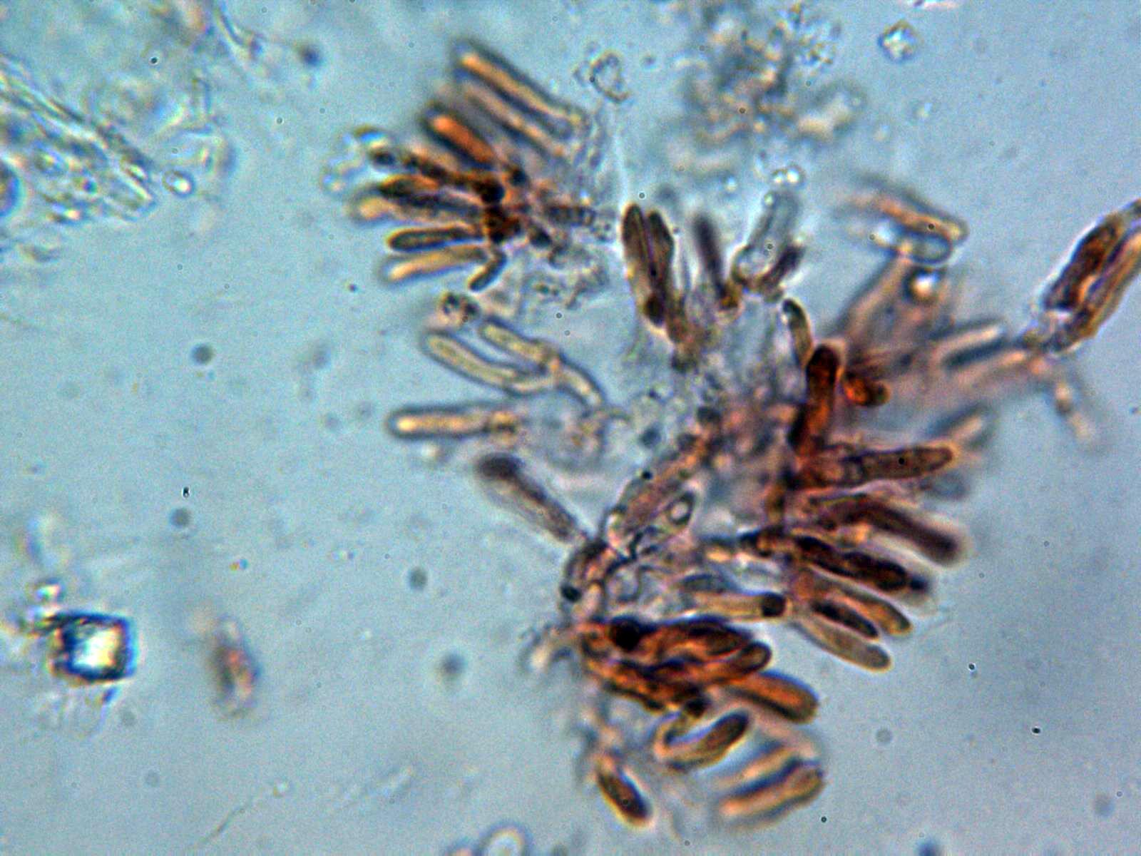 Y una que ya me había encontrado anteriormente y que dadas sus reducidas dimensiones solo la podemos observar de propina al estudiar algún otro hongo, la Dendryphiopsis atra, actualmente denominada Kirschsteiniothelia atra