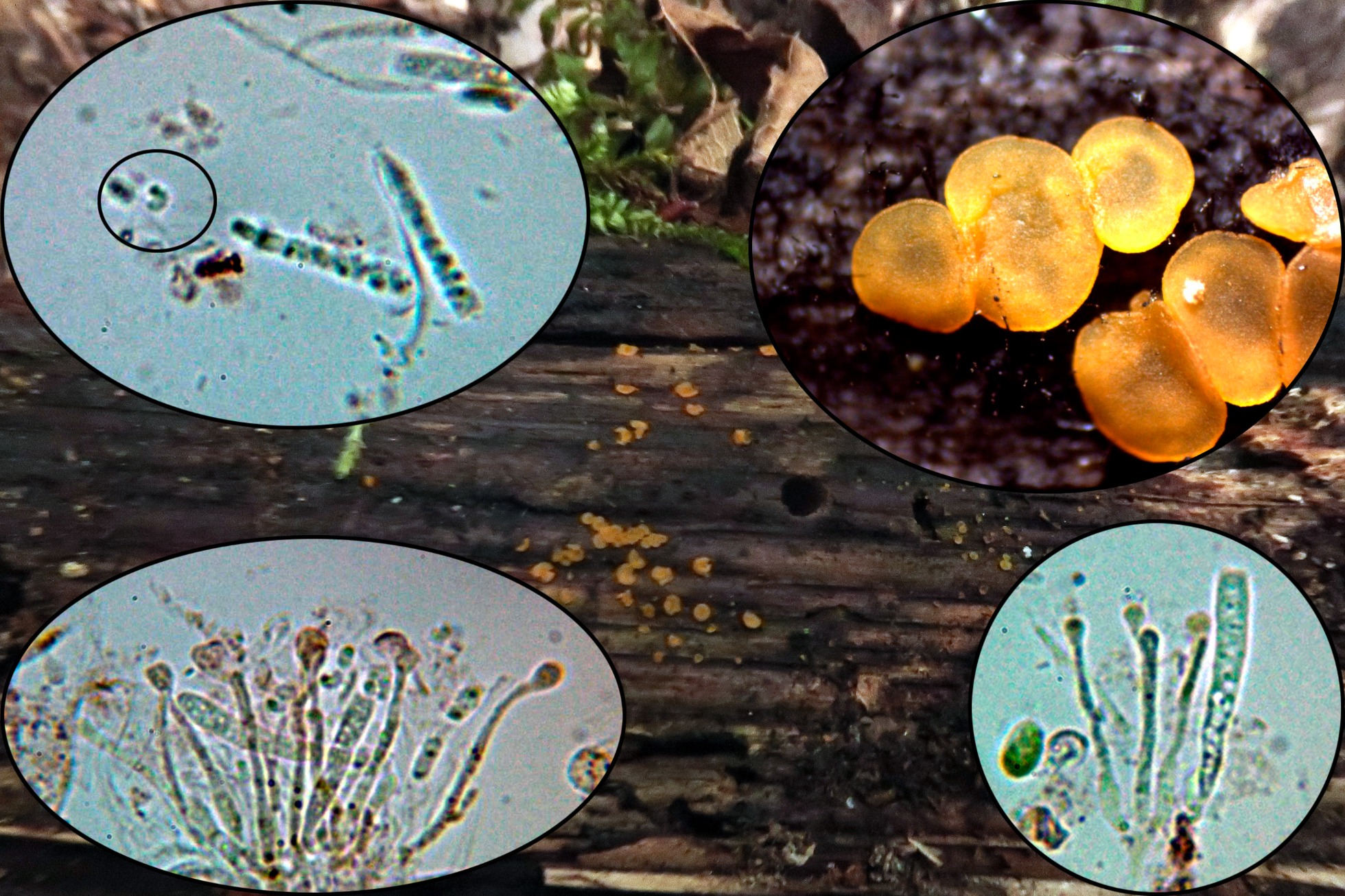 Una Orbilia que tiene que ser bastante abundante ya tan solo por las veces que me la he encontrado últimamente, con sus muy diminutas esporas fuertemente alantoides y sus características paráfisis, la Orbilia xanthostigma