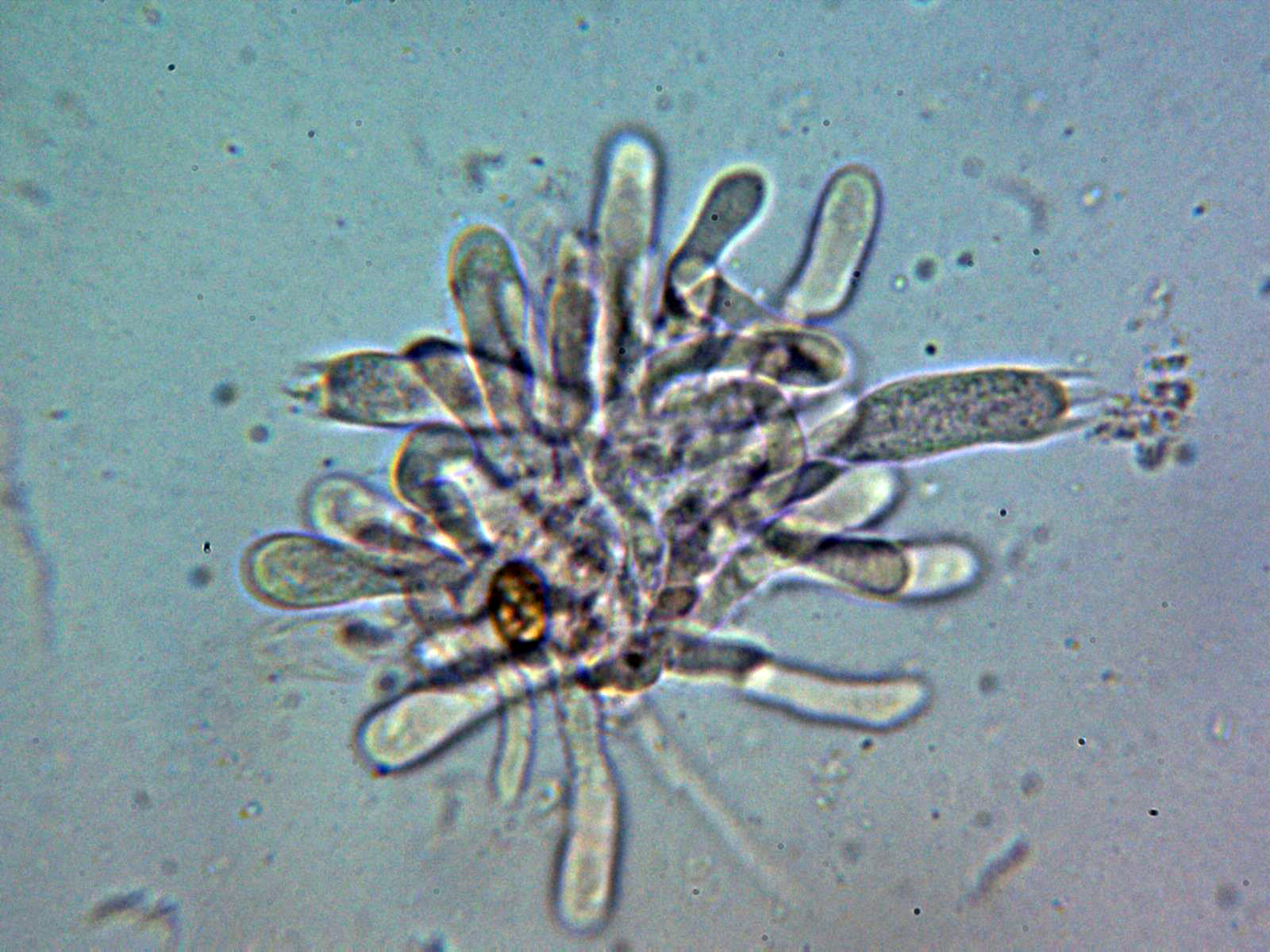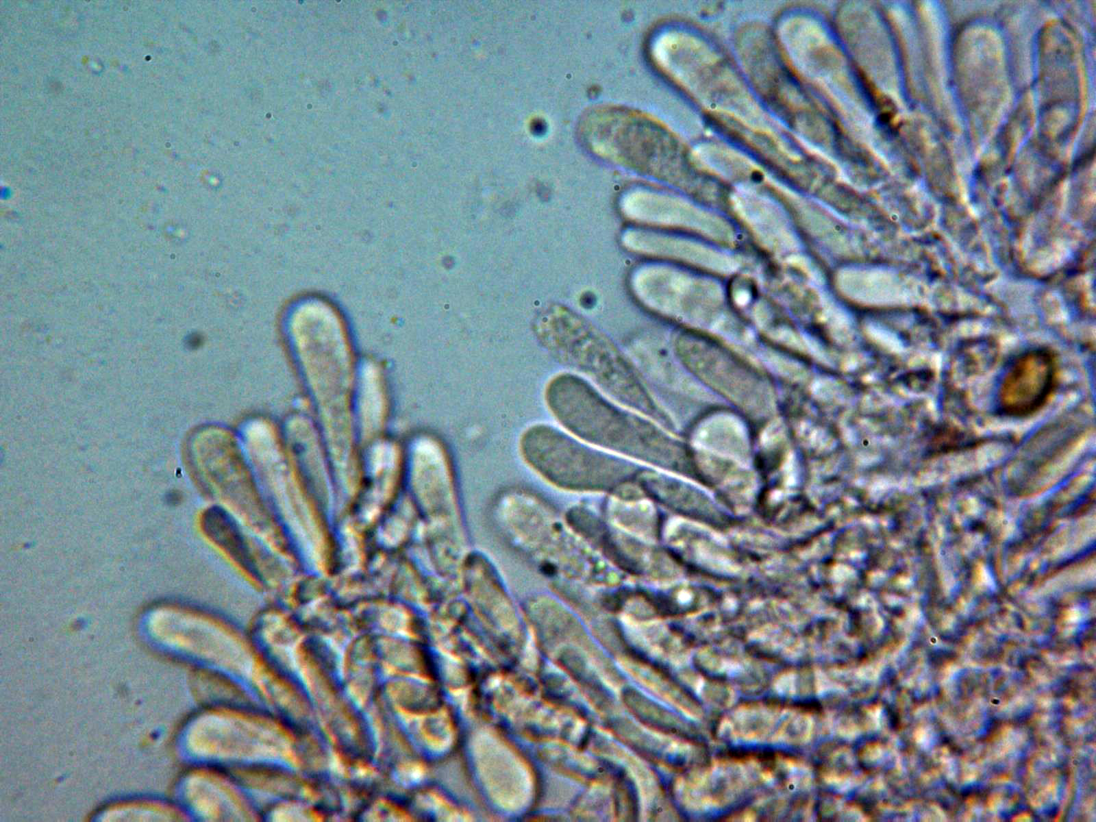 Numerosos queilocistidios de forma variada, claviformes y ensanchados en el ápice: