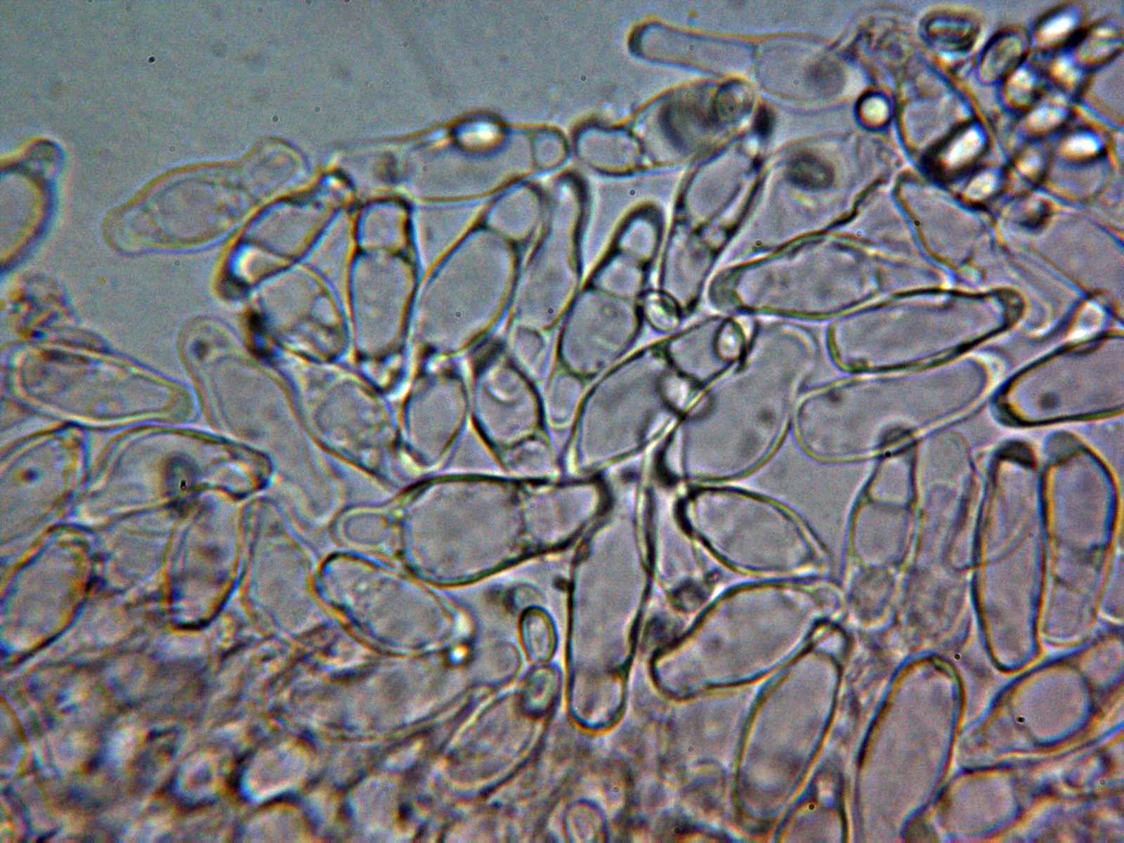 Queilocistidios muy abundantes que cubren por completo la arista laminar y que se desprenden fácilmente: