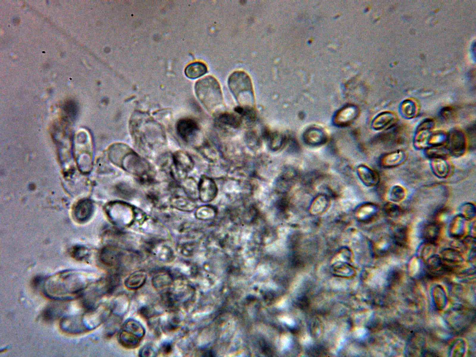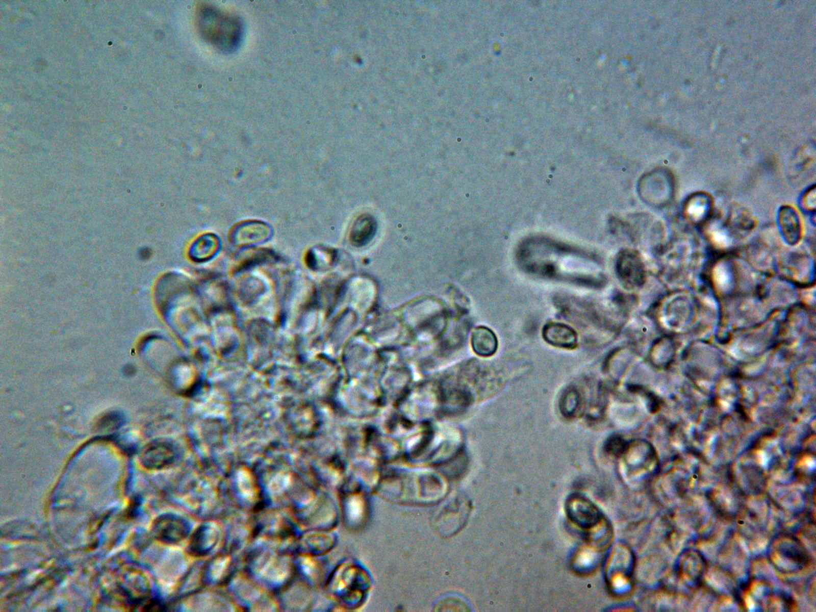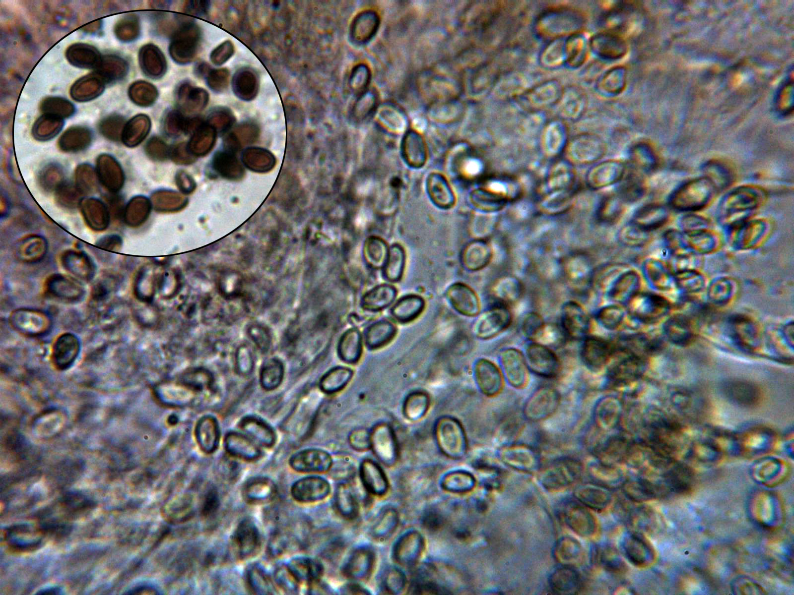 Y las esporas en agua y en la miniatura en Reactivo de Melzer (fuertemente dextrinoides):