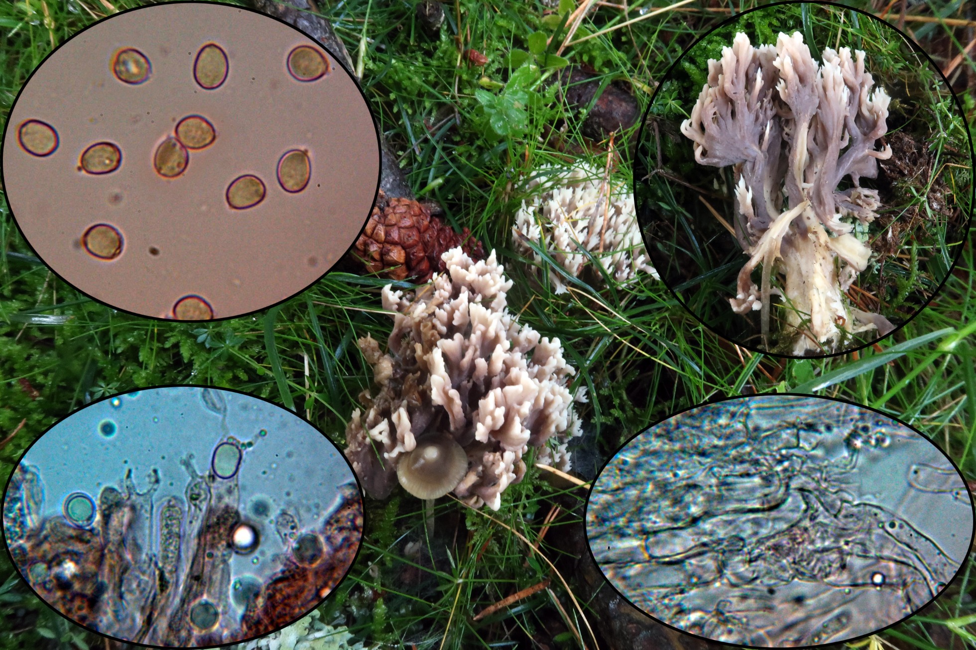 Esta solo lo había encontrado bajo planifolios, en esta ocasión bajo pinos, la Clavulina cinerea