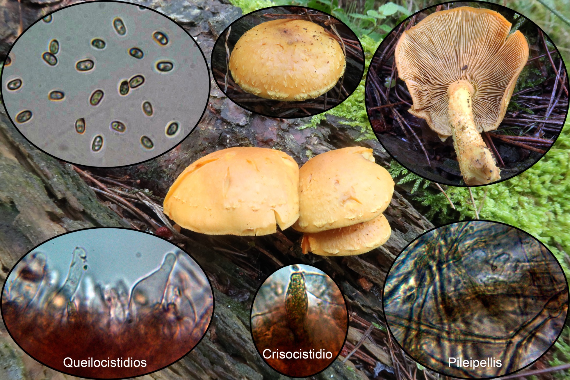 Una preciosa Pholiota, bastante común sobre madera de pino, la Pholiota flammans
