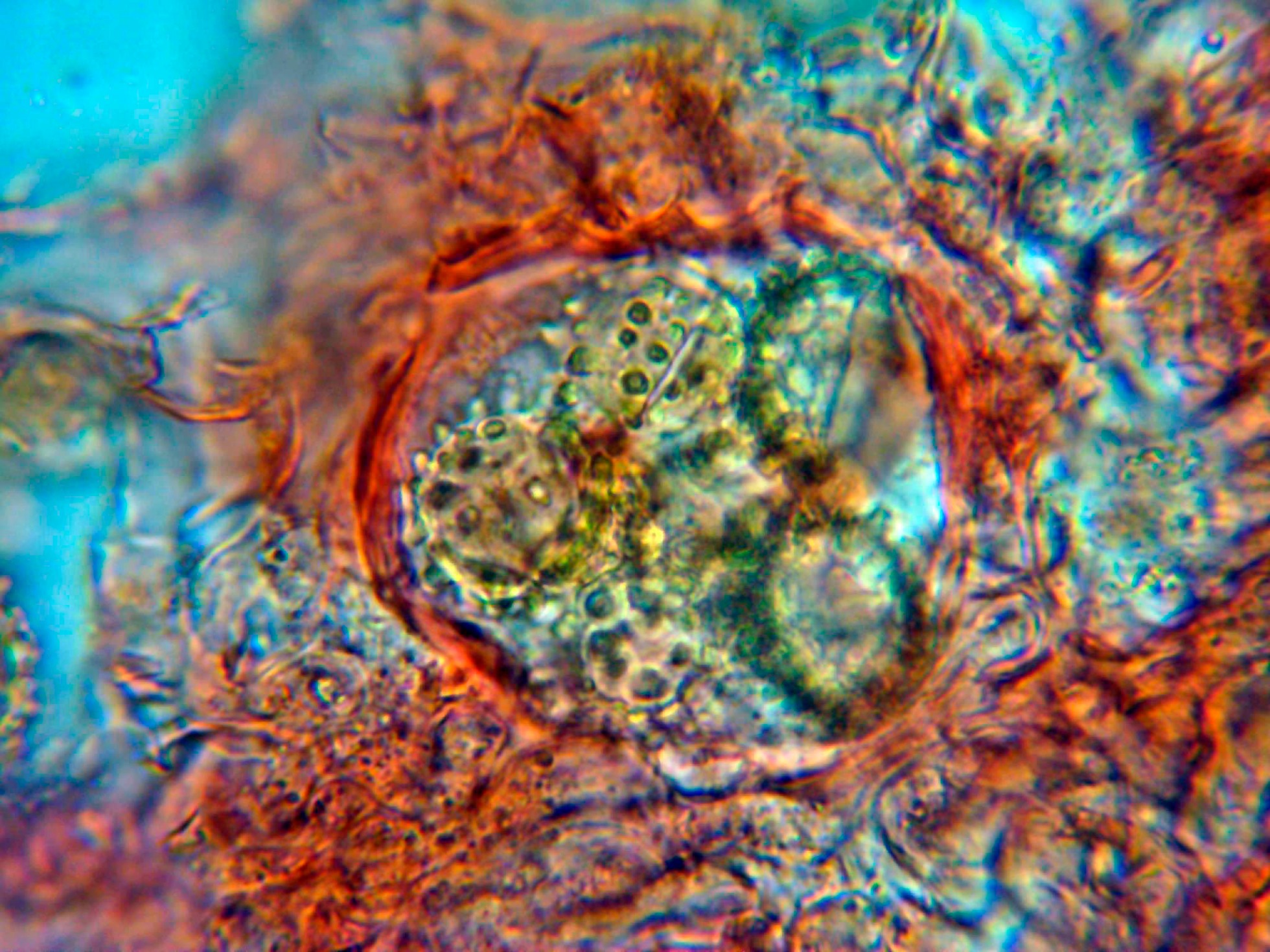 Hifas del contexto del interior del peridio a 1000 aumentos: