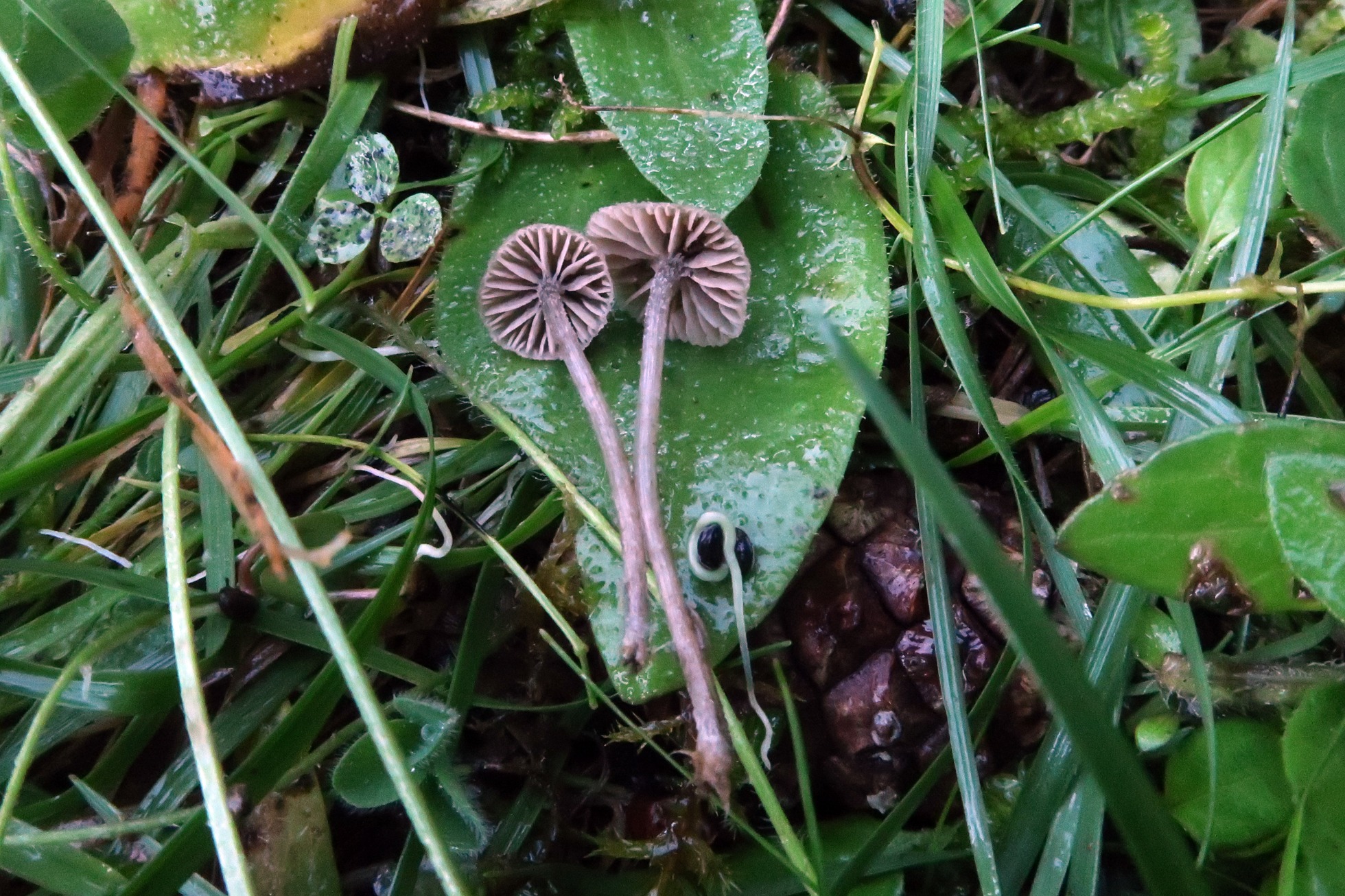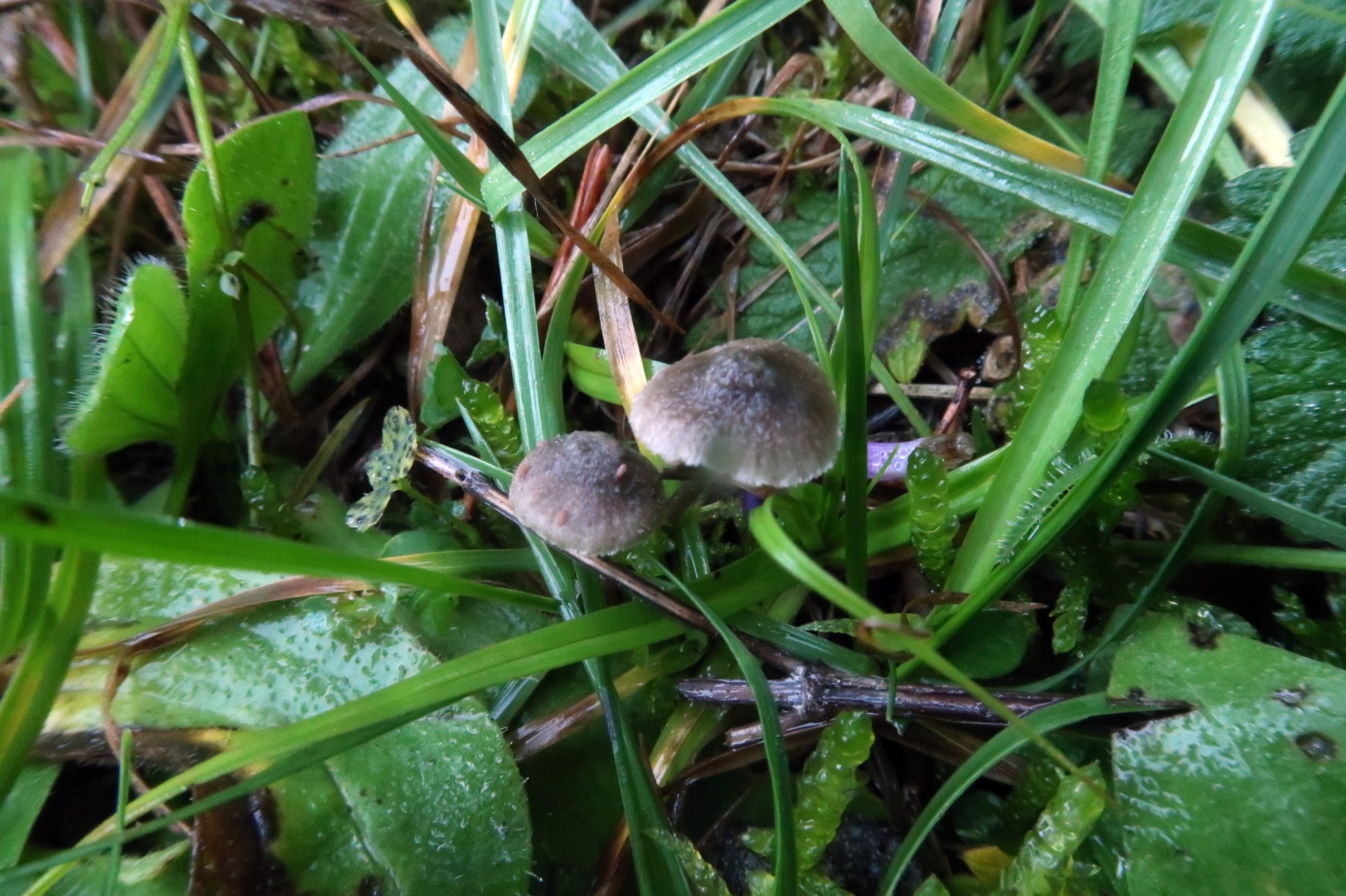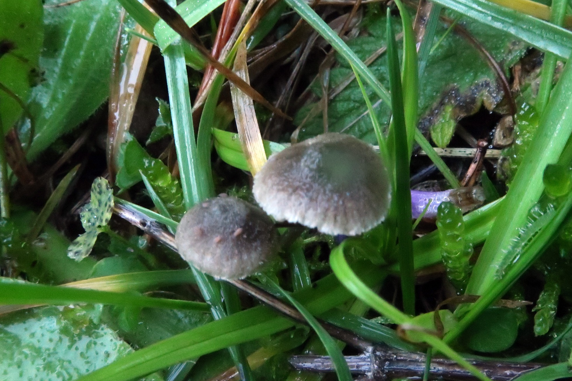 Un par de ejemplares, el mayor de solo 9 mm. de sombrero, de color marrón grisáceo oscuro con el borde blanquecino: